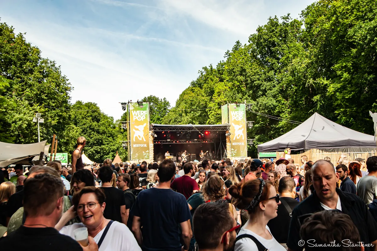 ‘Wat zijn jullie mooi geschminkt hier vooraan!’, zegt S10 enthousiast tegen een groep jonge fans. De brandende zon heeft het Werfpopterrein inmiddels verlaten, maar het is nog licht. Om 19:00 uur, nog nèt op tijd voordat de jongste bezoekers naar bed moeten, betreedt de Hoornse rapper/zangeres het podium. Een luid gejuich stijgt op van het veld. Veel mensen kennen S10 van haar deelname aan het Eurovisie Songfestival eerder dit jaar, en met haar dansbare beats en eigenzinnige Nederlandstalige teksten weet ze een breed publiek aan te spreken.