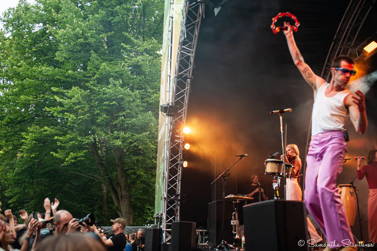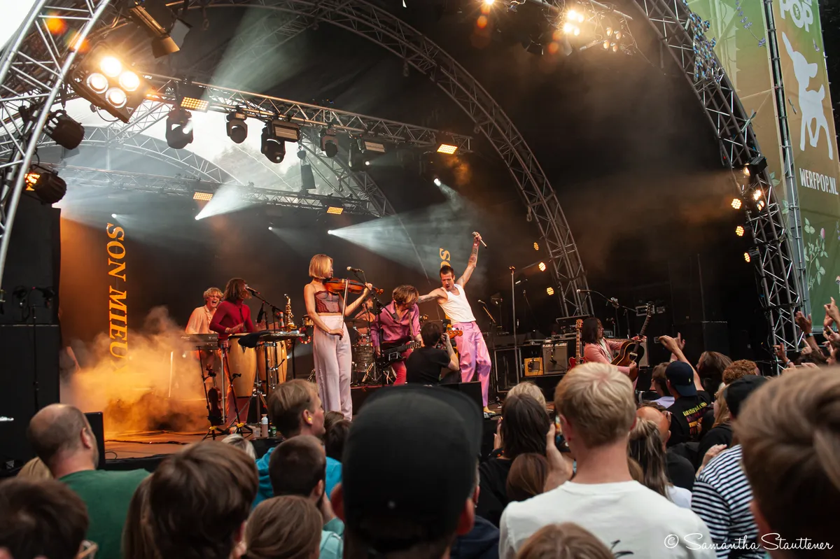 Meteen vanaf het openingsnummer ‘Drive’ is het feest. De bandleden zijn goed op elkaar ingespeeld en hebben het duidelijk naar hun zin op het podium. Camiel is een prima showman en neemt het hele veld mee met zijn heerlijke zangstem en energieke performance. Son Mieux heeft een uitgebreid instrumentarium meegebracht: van drums en samplepad tot bongo’s en conga’s, en van toetsen en gitaren tot viool, trompet en saxofoon. Dat levert een gelaagde sound op, met aanstekelijke grooves, dansbare beats en sutbiele accenten. Die saxofoon is trouwens helaas niet altijd even goed hoorbaar in het samenspel.