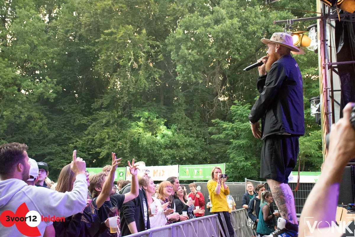 Tijdens het zwoele ‘Beneden’ stijgt het niveau en dalen de achterwerken. Het lijzige ‘Drankgoud’ eindigt in gesynchroniseerde danspasjes van Jordy, Diggy en Juno, die alle fans vanzelf overnemen. Dan gaat het shirt van Diggy uit, en wordt hij tijdens ‘The Most’ een tornado van dreads die in de stellages van het podium klimt. Juno smijt er spoken word tussendoor met het plechtige ‘Vroeg of Laat’. Intussen doen we even een stukje cardio mee met de joggende dansbewegingen van Jordy. Tijdens de daaropvolgende tune rust hij uit door van het podium te duiken en op handen gedragen door het publiek over het veld te laveren.