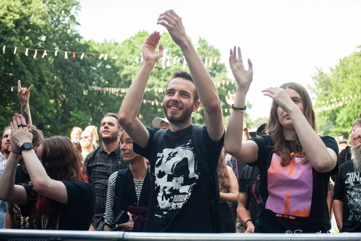 Nadat hun eerste plaat erdoorheen is gejaagd, trekt Het Gezelschap nieuwe ammunitie uit de kast. ‘Station 1’ is de meest significante songtitel, de rest viel niet meer op te vangen in het feestgedruis, vooral niet wanneer de voltallige formatie van het podium stapt om in een cirkel samen met de toeschouwers te gaan stampen. Natuurlijk is dat meteen het signaal om een nog hardere pit te starten, maar de artiesten weten zich prima te verdedigen en de woordenwaterval wordt nooit onderbroken. Na afloop krijgt de strakst afgetrainde persoon in het publiek als beloning voor zijn harde werk een vinyl van de band, de troostprijs voor de overige lieden is het feit dat er een nieuw album aankomt! Wij kunnen niet wachten.