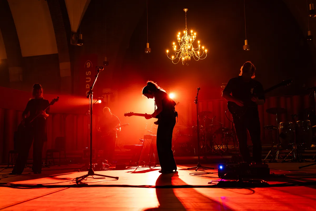 Amper een kwartier later staat Lesoir al op het altaar. Terwijl een deel van het publiek nog in de rij staat voor een flesje Primus (bier drinken in een kerk, een primeur voor velen), trapt de Maastrichtse band hun set licht aarzelend af. Dat kan liggen aan het geluid dat nog even zijn weg moet vinden tussen de kerkmuren. Maar als 'Fireflies' wordt ingezet is het gedaan met de voorzichtigheid. Het instrumentale gedeelte klapt er keihard in en wekt zelfs bij de aan het kruis genagelde Jezus kippenvel op. Het momentum blijft: tijdens 'You're The World' - een nummer over moeders en in het bijzonder moeder aarde - schittert Ingo Dassen met gitaarwerk dat zowel technisch als emotioneel perfect raak is. De band speelt met een intensiteit die je niet alleen hoort, maar ook voelt trillen door de kerkbanken.