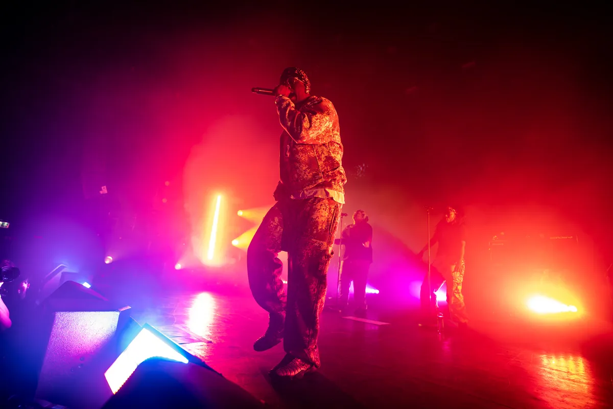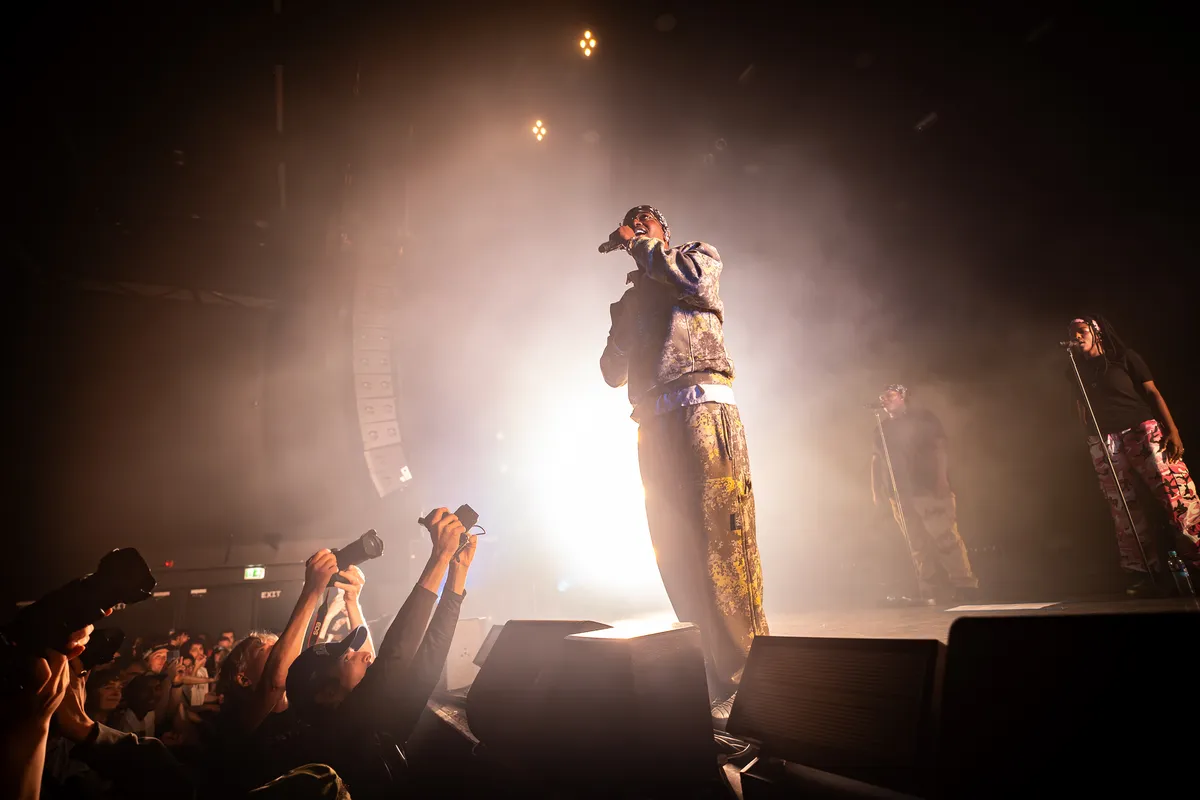 Maar hoe combineer je die twee sounds tot één samenhangende show? Daarop weet ‘Lil Boat’ het antwoord, blijkt vanavond. Zijn show bestaat uit drie onderdelen, te beginnen met de rustigere nummers van zijn nieuwste album. Hij wordt ondersteund door een vrouwelijke band, maar blijkt zelf ook goed te kunnen zingen. En ja, daar komt wel flink wat autotune bij kijken, maar dat geeft het ook wel zijn charme. Bovendien doet-ie vrijwel alles live.