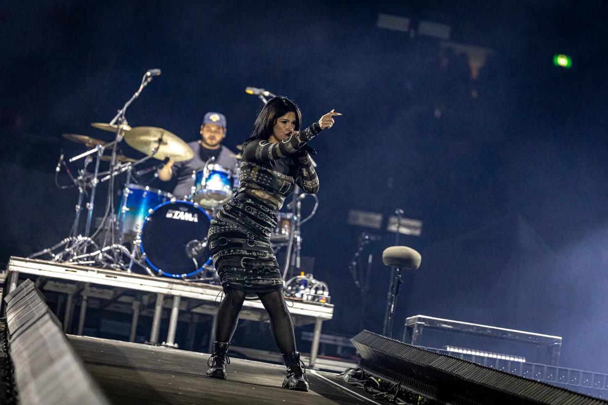 Wél op een grote arena voorbereid is de hoofdact van vanavond. Grote videowalls en veel lasers vullen het GelreDome en vanaf opener ‘Somewhere I Belong’ zit de sfeer er goed in. De akoestiek is gelukkig wat vergevingsgezinder voor het meer melodieuze geluid van Linkin Park. Opvallend is hoe nieuwe zangeres Armstrong zich tijdens de eerste nummers meer op de achtergrond houdt en het vooral Mike Shinoda is die zich aanvankelijk als frontman presenteert. De 49-jarige, maar ogenschijnlijk met eeuwige jeugd gezegende zanger/rapper/instrumentalist doet het woord en neemt de voornaamste zangpartijen voor zijn rekening. Pas bij het derde nummer ‘Crawling’ krijgt de stem van Armstrong voor het eerst de ruimte. Die neemt ze op haar eigen manier en voorziet de bekende nummers van een frisse rauwheid, in contrast met het vaak meer gladde stemgeluid van voorganger Bennington. Naarmate de show vordert wordt haar positie aan het front gelukkig duidelijker gedefinieerd.