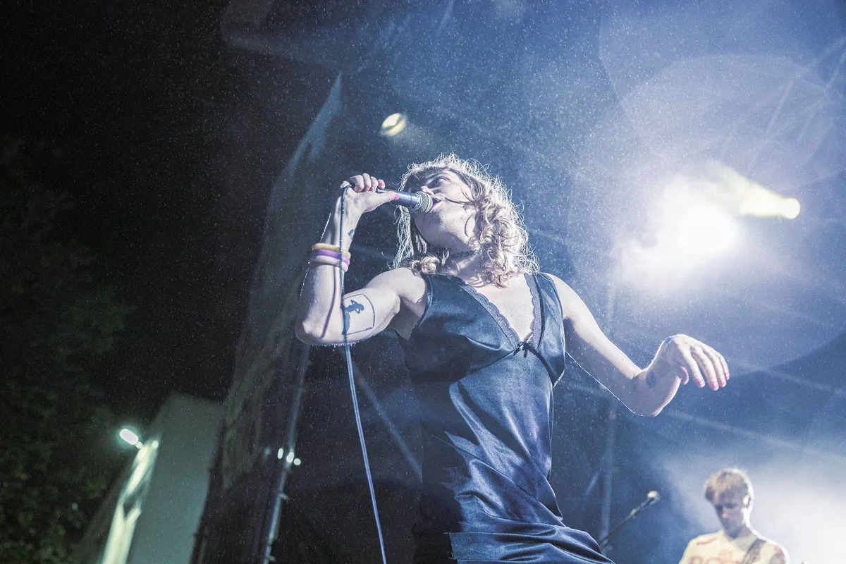 In de middag zijn we dan al goed om de oren geslagen met een sterke staalkaart aan ijzersterke bands. Het publiek moet nog een beetje op gang komen als Geo uit Groningen het spits afbijt met hoekige punkritmes en een lekker losse frontman met een permanente 80’s vibe. Uitstekend begin. Parker Fans werd naar eigen zeggen om 11.00 uur deze ochtend gebeld met de vraag of ze om 14.00 uur thuisact Bowl wilden vervangen, dat door ziekte af moest zeggen. Natuurlijk kan dat, ook al heeft de band nauwelijks een idee op wat voor festival ze staan. Ook muzikaal is het hier een outlier, met een stevige basis van samples en synths. Leuk is het wel, niet in het minst ook door de lollige arrogantie van de praatjes tussendoor. "Ik zie hier veel mannen van rond de vijftig. Dat is leuk, want die komen me straks zeggen dat ik ze doe denken aan hun zoon."