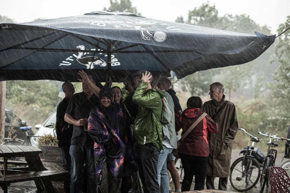 Inmiddels kijken we steeds zorgelijker naar de donkergrijze hemel en naar buienradar. Dat doet de organisatie ook, want direct na vertrek van Malice K wordt aangekondigd dat het hier vanwege het naderende onweer niet meer veilig is, maar dat we mogen schuilen in de naastgelegen klimhal Sterk. Goed geregeld!