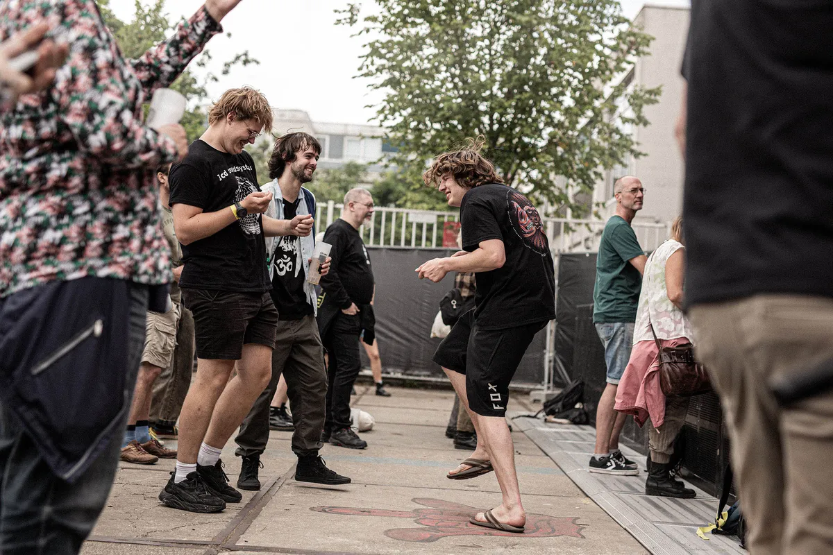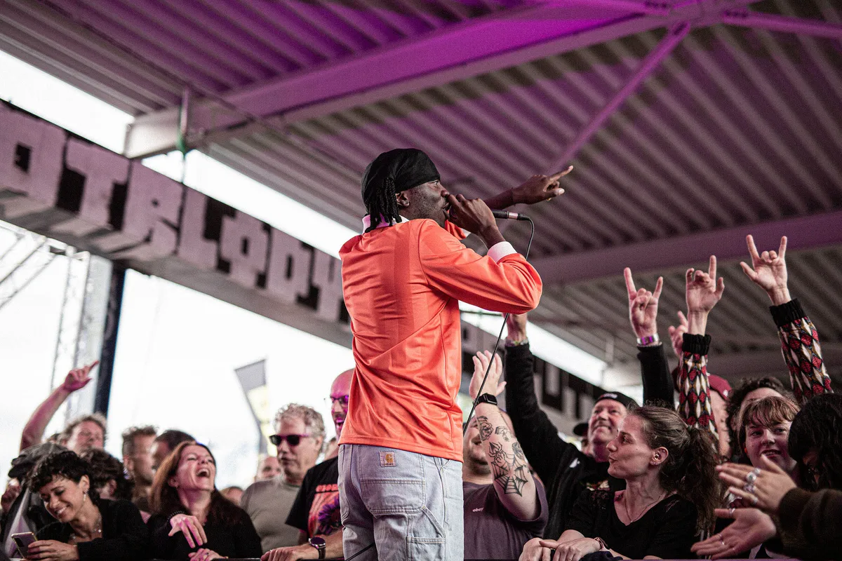 Na de legendarische eerste editie van Loose Ends in 2019 in Amsterdam landt het feest van boekingskantoor/festivalorganisator Friendly Fire, en sinds vorig jaar ook TivoliVredenburg, nu voor de tweede keer op Beton-T in Utrecht. Dat zal niet voor niks zijn, want dit is een perfecte stadsrafelrand voor een frisse duik in de underground. De nabijheid van een klimhal blijkt bij nader inzien ook gelukkig, als we met zijn allen een half uurtje mogen schuilen voor het onweer dat overtrekt.