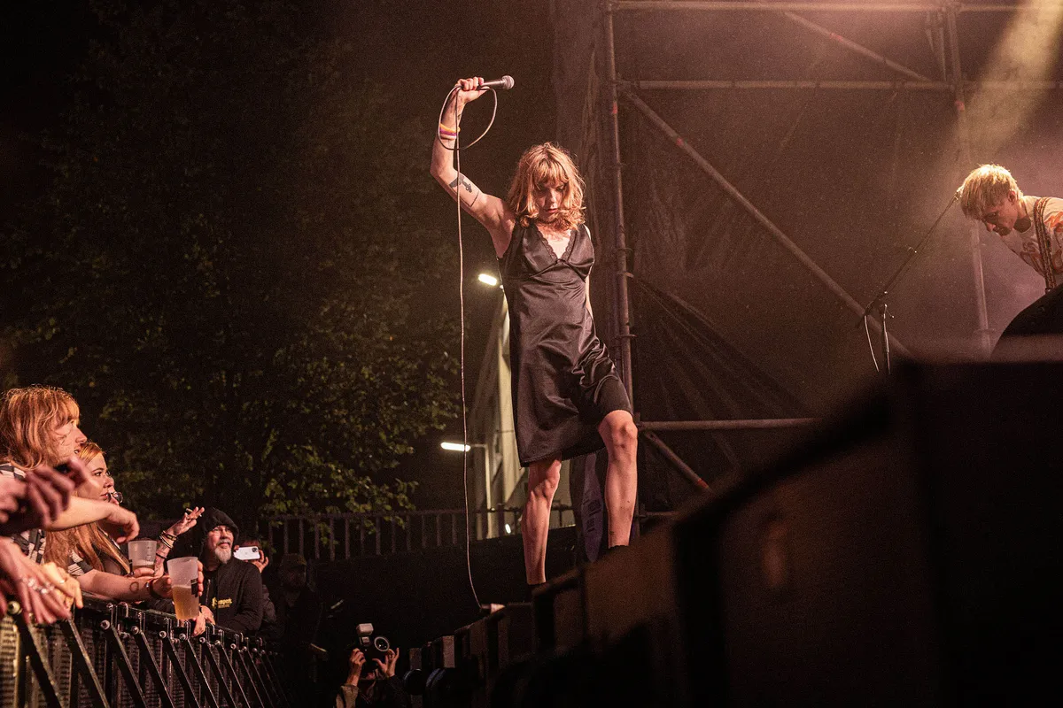 De drie dames van HotWax laten er evenmin gras over groeien. De lekker smerige grunge is een prima opmaat naar afsluiter DITZ. Nog één keer kan iedereen de pit in en iedereen gaat ook de pit in. Ergens knaagt de soms wel erg opzichtige vergelijking met Fontaines DC en Idles, maar hey, beter goed gejat dan slecht verzonnen en dit is wel echt precies wat we hier en nu, op dit moment nodig hebben. Dus hop, bier in de lucht en de circlepit weer in.