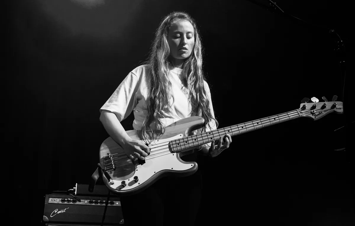 Bassiste Lana legt op haar beurt harde grondtonen in haar spel die door de hele zaal te horen zijn. Leuk is dat ze voor een wat meer gevoelig nummer in de set, even op een kruk is gaan zitten, hieronder ontstaat een intieme vibe op het podium. Gitariste Jasmine van der Waals is in vorm en laat de muziek spreken met haar virtuoze gitaarspel Paradiso genieten. Op gitaar klinkt haar spel erg melodieus. Opvallend is de zogenaamde ‘soundscaping’ die Jasmine door middel van effecten maakt.