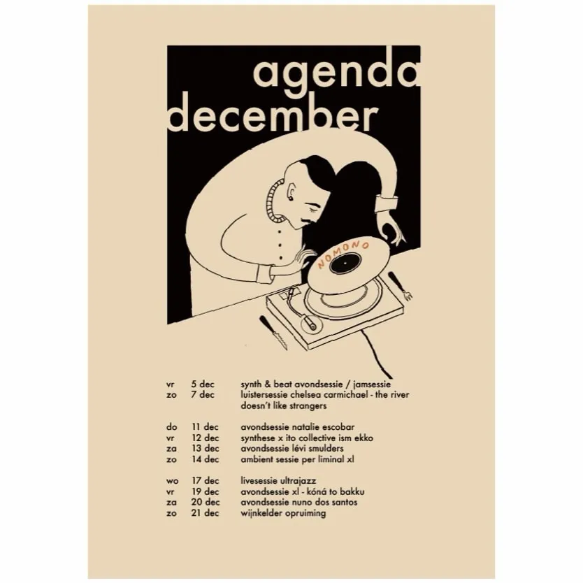 Nu, ruim twee jaar later, is Nomono onder Utrechtse muziekliefhebbers bekend terrein. Hun programma heeft zich enorm uitgebreid: drie tot vier keer per week is hier wat te beluisteren in allerlei genres en vormen. “Dat spectrum vind ik echt iets leuks. Dat er zowel onbekende enthousiastelingen met hun eigen vinylcollectie komen als artiesten met een fanbase!” Eerder dit jaar stonden Sef en Spinvis achter de draaitafels bij een luistersessie. En recent was Benjamin Herman te gast, één van Nederlands meest geliefde saxofonisten. “Dat voelde wel als een belangrijk moment”, zegt Kuin.