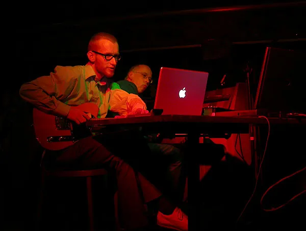 Ze spelen een soundtrack bij een gruizige slowmotion film in zwart-wit. Sfeerbeelden van molens, auto's, een vouwfiets en Rutger zelf. Wie de cd's van Machinefabriek kent, verbaast het niet dat er een laptop op het podium staat. Je hoopt dan ook dat er uit deze podiumopstelling - de piano wordt 'door de computer gehaald' - iets nieuws ontstaat. Pianosamples vermengd met live piano. Dat is echter nauwelijks het geval. Het lijkt wel de bedoeling, maar de heren blijven hangen in trage improvisaties. Mooi, maar niet echt uniek en verrassend.