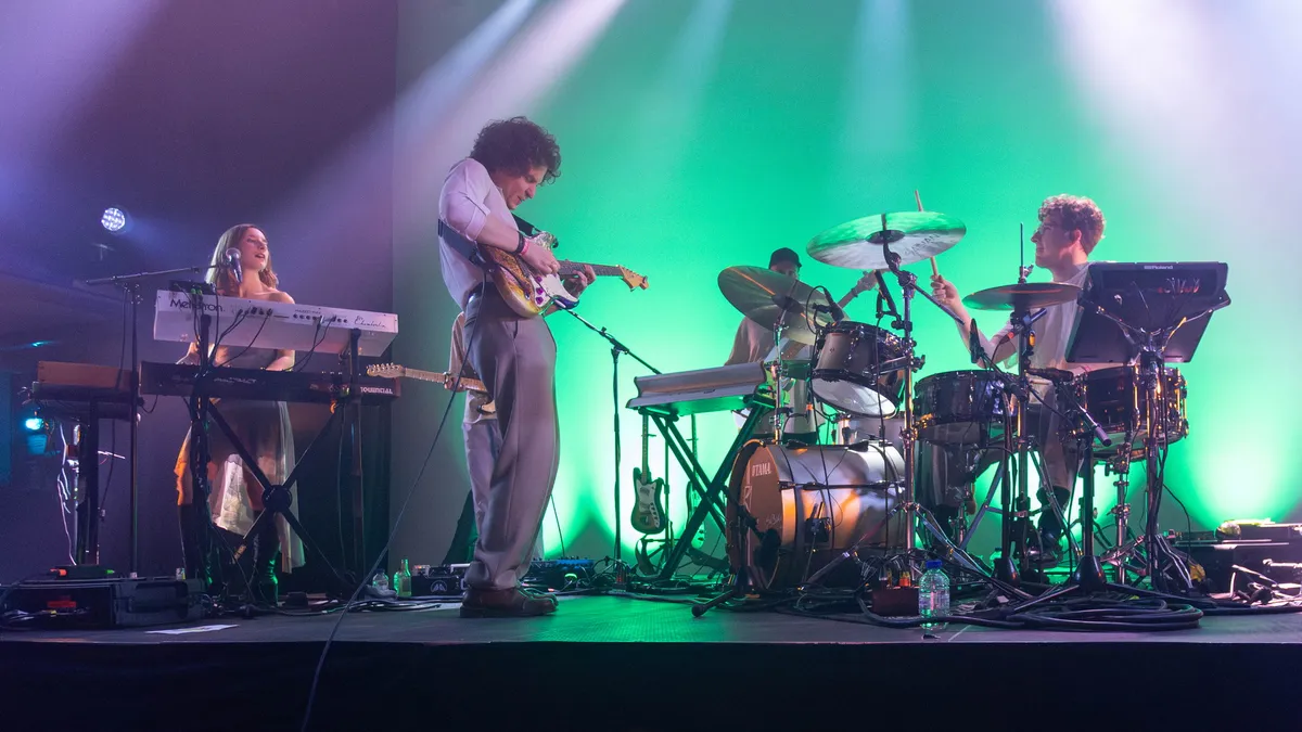De titeltrack Champain wordt ingetogen en bijna croonerachtig gebracht. “Replace your water with champagne,” zingt Pironet, alsof hij het publiek één voor één wil overtuigen dat het écht beter wordt. De zaal zingt het refrein zachtjes mee. Het is intiem, bijna broos, maar juist daardoor raak. Daarna opent Good Girls wat luchtiger, terwijl oudere parels als Pouring Rain nog altijd recht door het hart gaan. Tijdens Lay Me Down wordt Gebouw-T even een warme cocon, met gelaagde ambient en koortjes. En als Pironet de ballad Aurora half-zittend, half-liggend brengt, voelen we ons even één. Via het klagelijke Lucky Clover werkt de band toe naar afsluiter Until I Find Some Bigger Fears, waarin Jente terugblikt op wat hem overkwam — en tegelijk beseft dat hij er nog ís. Een set als een helingsproces: eerlijk, breekbaar en tegelijk is het glas meer dan halfvol.