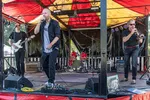 Met een zieke drummerVoordat de drie mannen van Blunt beginnen, kondigt de zanger aan dat hun drummer vandaag doodziek is – waarna een meelevend ‘aaaaaah’ volgt vanuit het publiek. Heeft hij dat niet gezegd, dan heeft iemand iets gemerkt: hij speelt met enorme energie en overtuiging en stuwt zijn collega’s met volle kracht vooruit. Het trio dat met hun muziek naar eigen zeggen het leven viert in al haar chaos, trekt meteen van leer en zet een volle heavy sound neer. En dat blijft eigenlijk zo gedurende het hele optreden, met daardoor het risico van verzadiging op een bepaald moment. Jammer, want er zit absoluut melodie in de nummers die met wat meer variatie in dynamiek waarschijnlijk beter tot zijn recht zou komen. Het (overigens zeer gemêleerde) publiek lijkt het niet te deren: dat vermaakt zich prima.