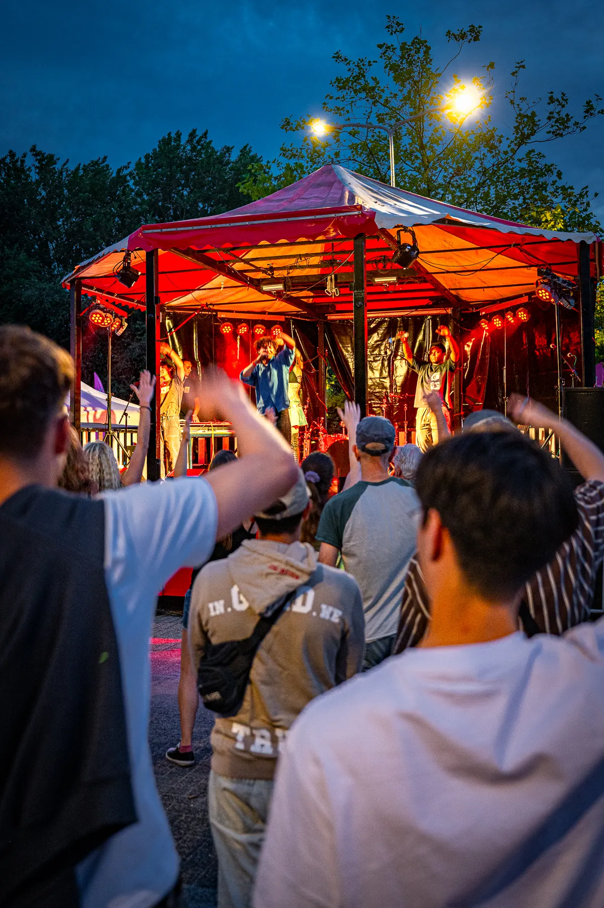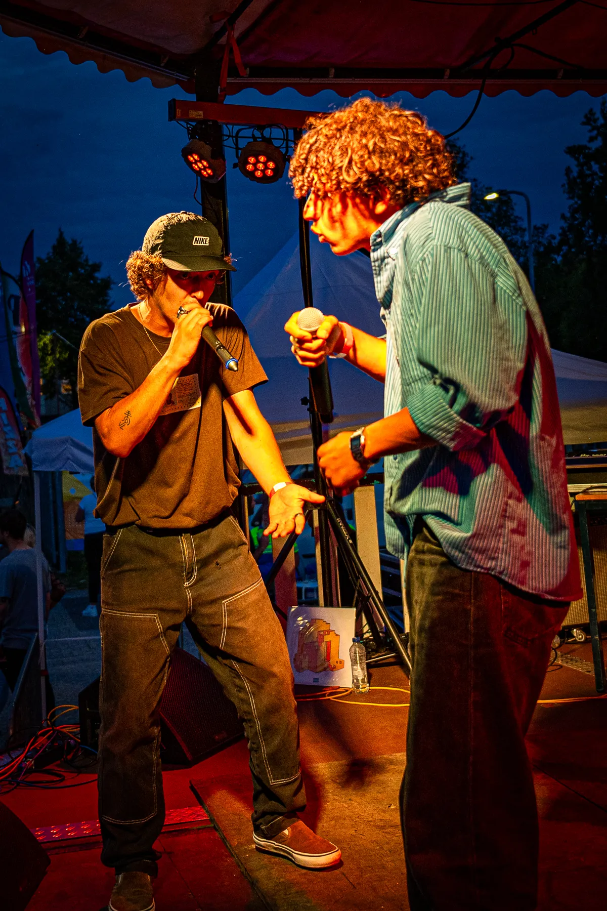 Fijne settingRapper Engel (uit Amsterdam, maar met Hoornse roots) is een man van vele samenwerkingen en daarom is het altijd weer spannend in welke samenstelling hij optreedt. Vandaag deelt hij het podium met gitarist/zanger Jawek Kamstra en trompettist Wouter Hakhoff (o.a. Jeugd van Tegenwoordig en De Kift). De drie hebben er duidelijk lol in om weer samen op het podium te staan en schijnbaar moeiteloos pakken ze de muzikale draad weer op. De voor de fans bekende nummers als Hoe Durft Ie?, Kleine Jongen en Regen komen voorbij, waarbij de refreinen luidkeels worden meegezongen door de Hoornse fan base. Ook een lekker funky eigen nummer van Jawek krijgt een plekje in de set, waarbij hij een enorme lap tekst er op hoge snelheid vloeiend uitgooit. Chapeau! Tussen de nummers door bedankt Engel de mensen van Manifesto die hem vaak de kans gaven om op het Hoornse podium op te treden. De titel van het laatste nummer klinkt daarom heel toepasselijk: Engel is weer even ‘Thuis’.