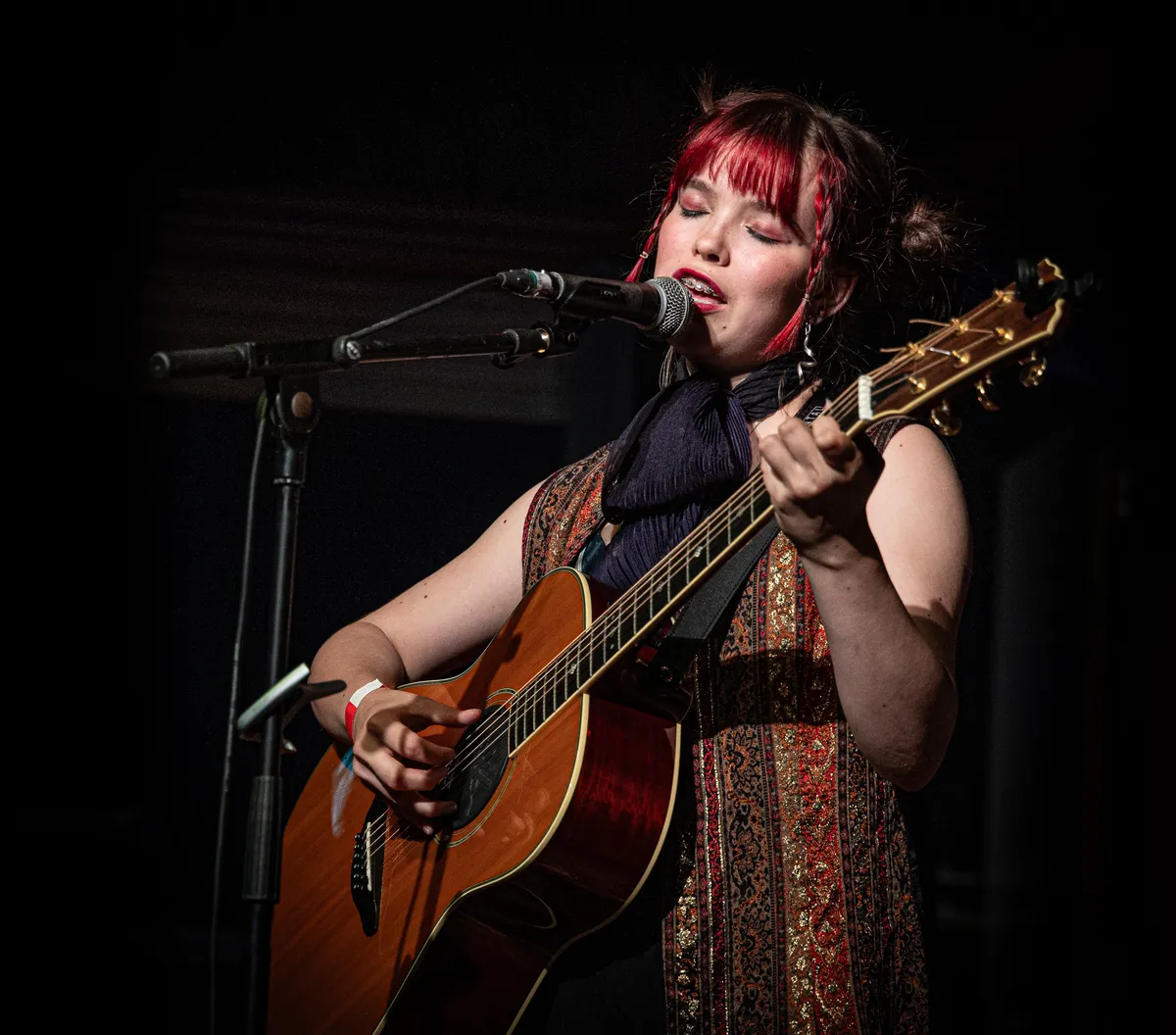 Veelbelovend talentAan de achttienjarige Mila Roosendaal de eer om na het woordje van de wethouder de muzikale optredens af te trappen. Dit keer niet als bassist van C-You, zoals ze hier eerder op het podium staat, maar als singer-songwriter die een aantal eigen nummers én een paar covers vertolkt. Zodra ze inzet, raak je betoverd door haar stem die moeiteloos schakelt van fluweelzacht naar powerful en alles wat daartussen zit. En altijd even zuiver. Niet gek dus, dat na ieder nummer veel applaus klinkt, ook als ineens het zaalgeluid uitvalt en Mila als een ware profi gewoon doorzingt tot alles het weer doet. Mila begint in september met haar studie Zang aan het Conservatorium van Amsterdam, maar een serieuze vraag is wat ze haar qua zang daar nog kunnen leren. Haar interpretatie van Shinéad O’Connors Drink Before The War bezorgt menige toehoorder in ieder geval kippenvel en als de mensen van de Manifesto-techniek vragen of ze nog toegift wil doen (‘dan bouwen we wel even wat sneller om voor de volgende act’), dan besef je dat we van deze dame ongetwijfeld nog veel gaan horen.