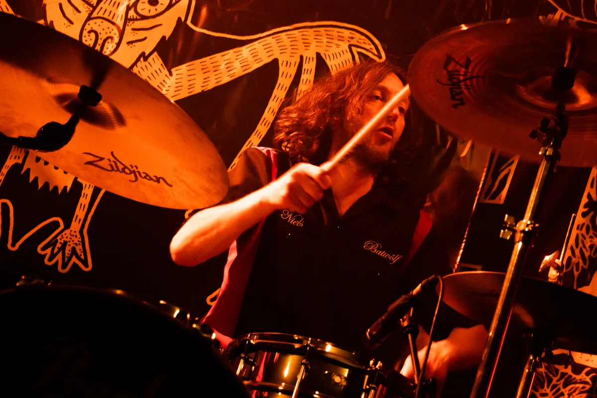Het is meteen duidelijk dat je naar Batwölf staat te kijken. Deze Leienaren dragen eigen tenues, met logo achterop en naamplaatje voorop, zodat je weet met wie je te maken hebt. En die grote backdrop met het Batwölf logo erop natuurlijk. Batwölf is de ideale opener met dikke, stuwende punk’n roll en een vleugje stoner en soms “funky as fuck.” De band was in 2018 al eens te gast op Bastard Fest in Mezz en brengt uit die tijd onder andere ‘I Am The Devil’ mee terug, waarbij zanger Jaap helemaal in zijn element is. Tegelijkertijd is het helemaal niet erg op om veertig plus te zijn, sust hij in het gloednieuwe ’35 4 Life’!