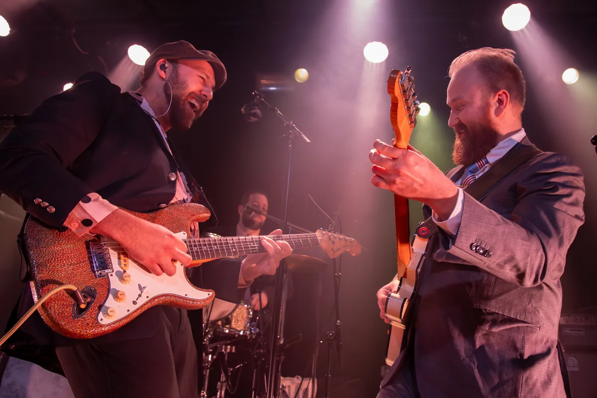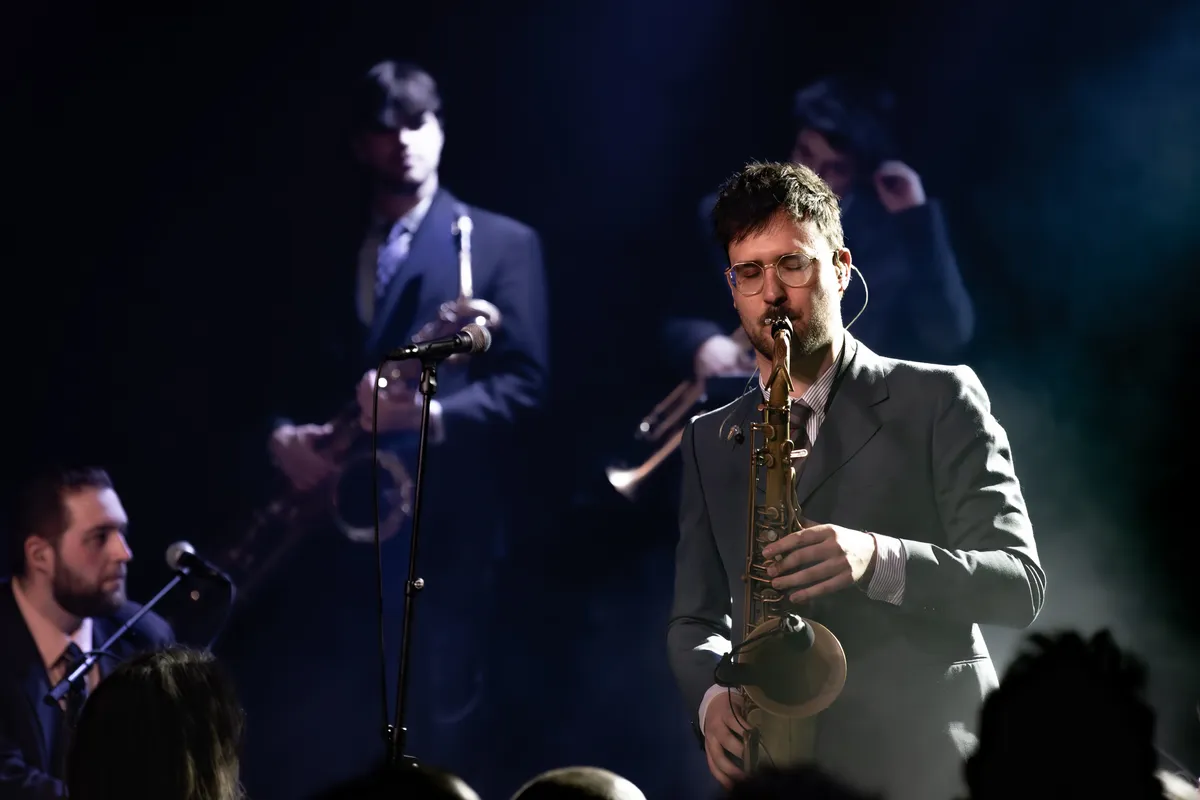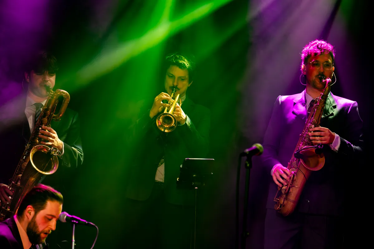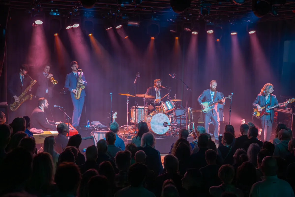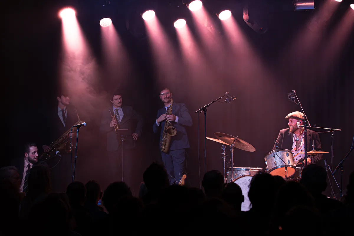 Drie blazers zetten stevig in. Een drummer mét stropdas - stijlvol tot in de details - houdt het tempo strak. Tamboerijn, bas, gitaren: samen vormen ze een warme mix van soul en rock’n’roll. Het publiek luistert aandachtig en beloont elk nummer met stevig applaus.
