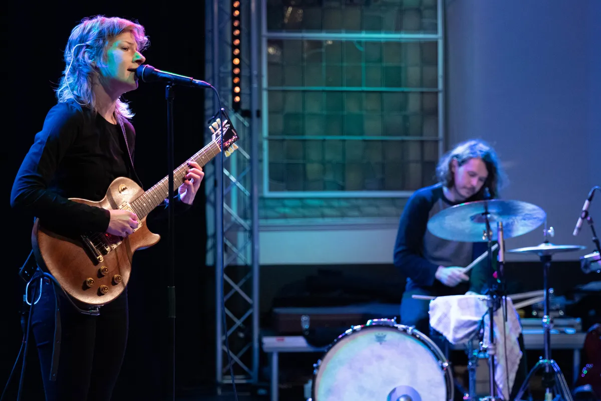 Podium34 in Borger, een schitterende oude kerk uit 1800 met boven de bar nog het oude pijporgel. Deze wordt gelukkig vanavond niet gebruikt tijdens het optreden. Aan het plafond hangen kroonluchters en de vloer is nog helemaal in zijn oude staat. Omdat het plafond erg hoog is zorgt dat wel voor een koude sfeer. De akoestiek daarentegen is wel weer erg mooi. Aan beide kanten van de zaal zijn zitplekken gecreëerd en in het midden staan een aantal statafels. Het podium waar de bands optreden is niet overdreven groot waardoor het voelt alsof je meer contact kunt maken met de artiesten.