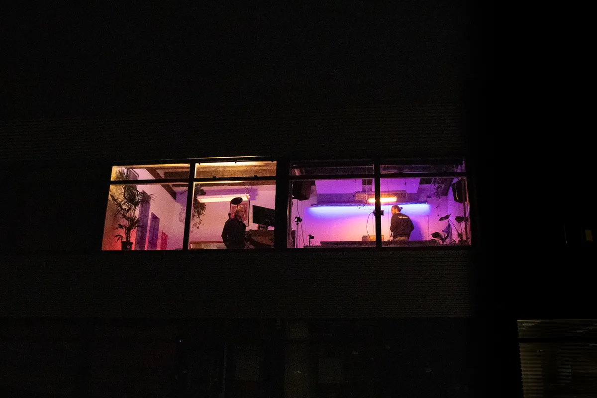 [Martijn] We hadden eerst een plekje in De Overdekte, zo’n honderd meter hemelsbreed van de locatie waar we nu zitten. Dat was een loods met veel opslagplekken, studio’s en ook de grootste platenopslag van Europa. Het grote verschil met hier is dat we in het epicentrum van elektronische muziek in Leiden zitten. In de oude studio hadden we al onze eigen broedplaats maar vanaf hier kunnen we dat verder doorzetten. Hier komen vijfhonderd mensen op een avond en die lopen allemaal een rondje. Die zien het bordje Maxi Radio, kijken eens naar binnen en realiseren dat er nog veel meer is dan alleen een club. Veel meer zichtbaarheid dan eerst.