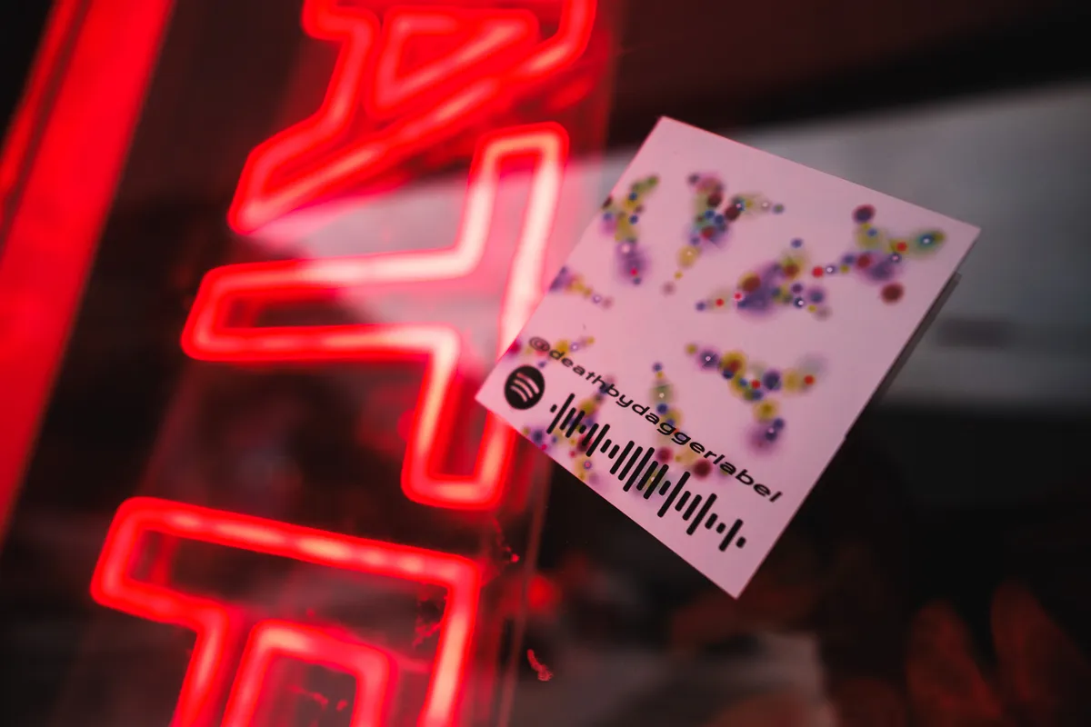 Waar sommige labels vooral cureren op sound, kiest death by dagger bewust voor een persoonlijke benadering in hun curatie. “We hebben volgens mij echt nog nooit iemand gereleaset die we niet hebben gezien”, licht Jurgen toe. Er wordt persoonlijk gesproken met artiesten voordat er überhaupt wordt nagedacht over een release. Het gaat daarbij niet alleen om de muziek, maar ook om artistieke visie en een onderlinge klik. “We willen dat de artiesten met wie we werken ook met elkaar gaan werken en zich verbonden voelen met elkaar en met ons.”