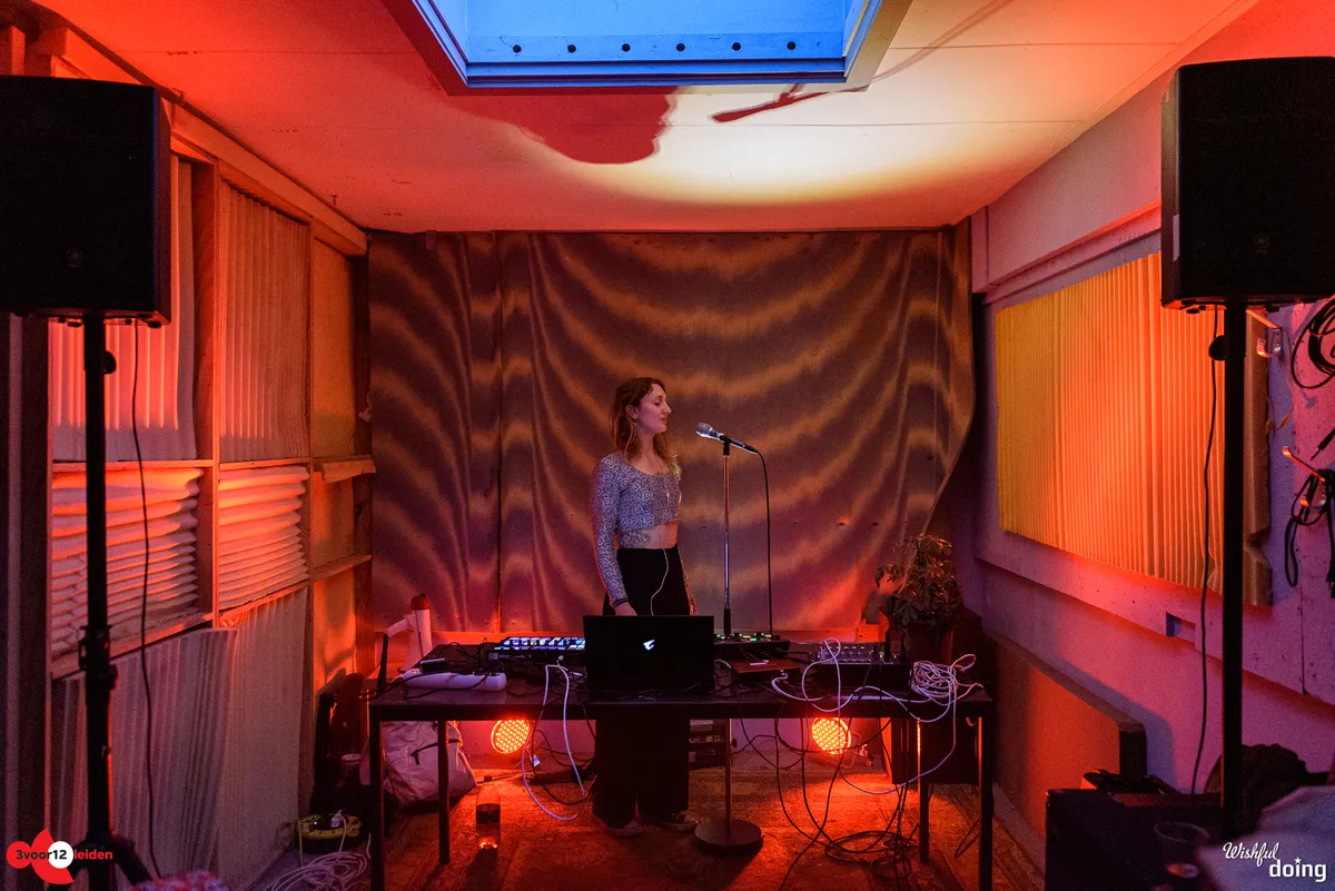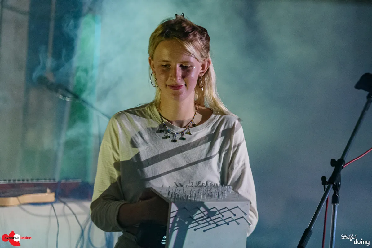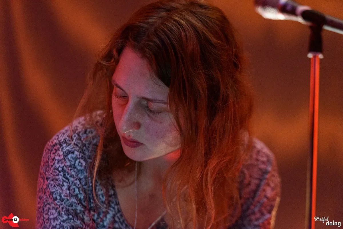 Hoewel inneruu dus uniek is, zijn ze er verrassend goed in geslaagd om artiesten te vinden die ons meenemen naar hun wereld. Tara Pasveer biedt als eerste zo’n inkijkje. Haar sfeervolle optreden draait om improvisatie en concepten. Zij maakt elektronische experimentele popmuziek, waarbij ze slim in haar eentje een veelkoppige band vormt door fragmenten op het podium live in te spelen of zingen, die op te nemen met een looper en vervolgens af te spelen. Zo kan ze haar eigen achtergrondgeluiden en backing vocals verzorgen als een éénpersoons inneruu. Die achtergrondgeluiden zijn vervreemdend: een zucht als een windvlaag, een gezongen hoge noot die vervormd weg-echoot, onbestemde piepjes.