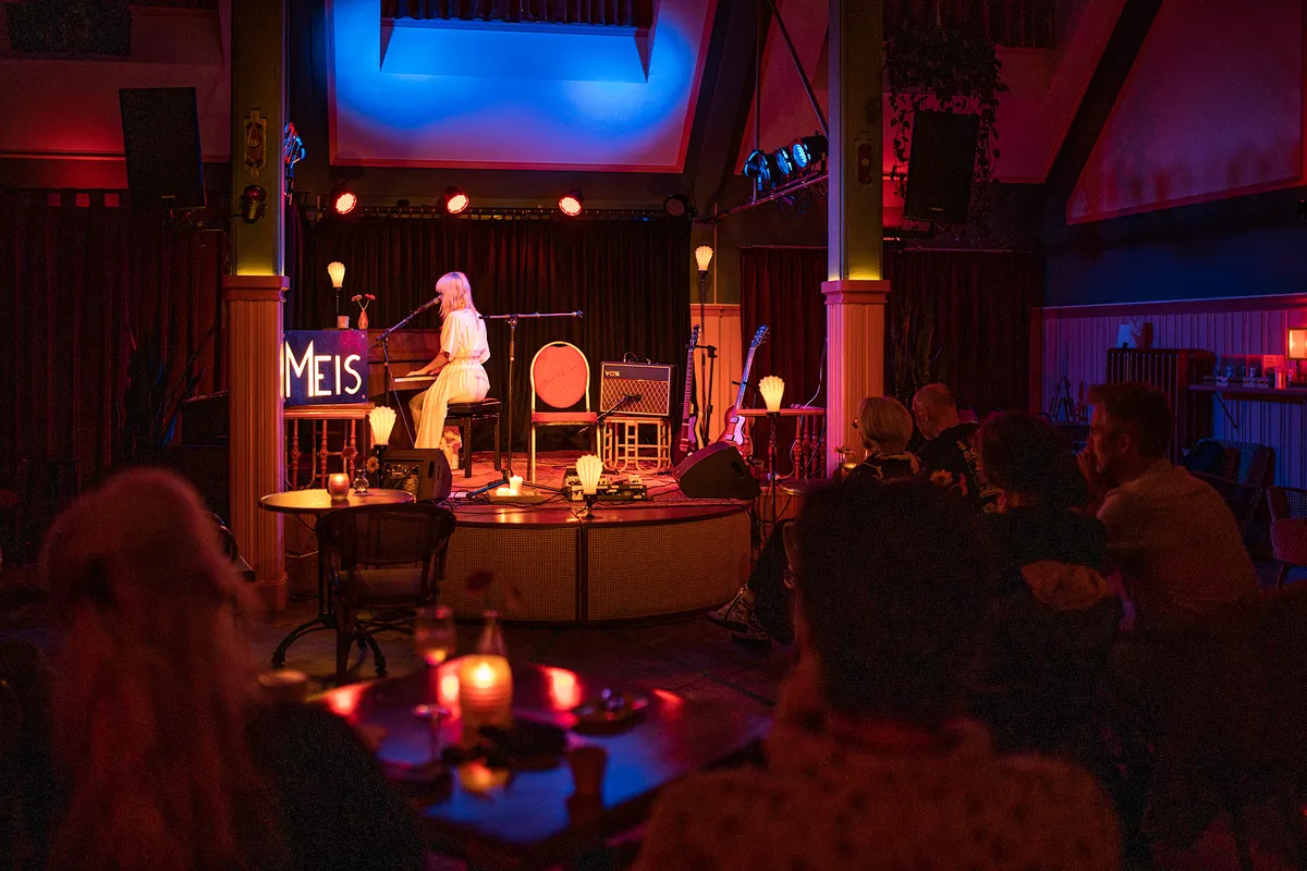 Bij binnenkomst in de zaal is de intieme clubsfeer met kaarsjes en sfeerverlichting meteen voelbaar. De zaal zit vol met het maximaal aantal mensen dat naar binnen mag vanwege de corona-maatregelen. Op het podium staat naast het verlichte Meis-logo een piano en twee gitaren, waarop Meis uitgeklede versies van haar nummers solo ten gehore zal brengen. Hiermee gaat ze terug naar de basis van toen de nummers voor het eerst geschreven werden. Nog niet iedereen is bekend met de nummers van Meis, maar daar zal het komende uur gauw verandering in komen.