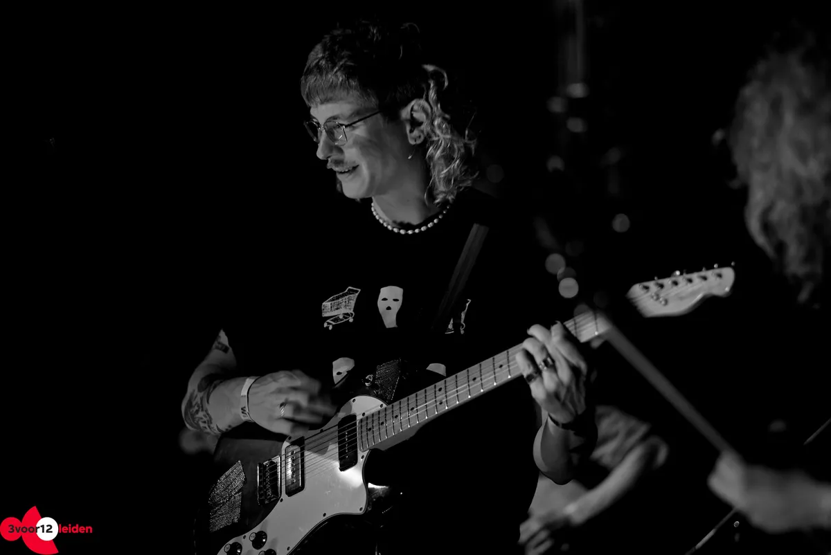 Ook qua intensiteit is de band punky: bassist Tijs Blom zien we spelen met geopende mond, zijn handen opvallend ver op de hals. Drummer Stijn Gruisen, hun voormalige gitarist, gaat tekeer achter zijn kit en glimlacht regelmatig. Leadgitarist Morris Heilijgers is juist stoïcijns. De band zet vanaf het podium onverwacht de schijnwerper op toeschouwer Franklin (“O, God!”): hij is vandaag jarig. Franklin is een vaste fan, en met reden: hij is de vader van Morris.