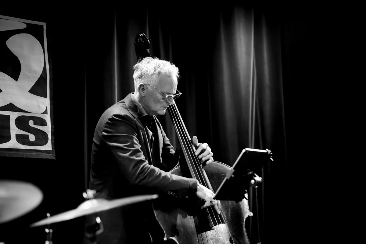Hoe dit zij, veuillez m'excuser, Monsieur Debussy, Cher Père des harmonies jazz, ik was meteen ingenomen door Melanie Bongs pianist Christian Doepke. Zijn harmonieën zijn de haren te berge rijzend cool, daarin meende ik weleens Maurice Ravel te traceren, alsook “verschijningen” uit de zogeheten twaalftoonsmuziek en ja dan die complexe bebop. Want kijk, heel goede muzikanten kunnen het niet nalaten bij elkaar leentjebuur te spelen, dat is van alle tijden, om vervolgens daaruit een geheel eigen denktrant te peuren. Want spelen, juist samen spelen, leert denken, het is niet andersom. Eenvoud en ja afgemeten voornaam kenmerkt het spel van Christian Doepke uit München, een goede bekende van Melanie Bong natuurlijk. En dit op zo’n eenvoudige piano nota bene, dat nemen althans jazzpianisten steeds voor lief. Bassisten vormen althans voor mij telkens een raadsel, een heerlijk raadsel, want harmonisch best te snappen, hoe ze toch in vredesnaam al plukkend de ruggegraat van een ensemble creëren. Van der Geest doet dit met meesterlijke schwung. En dan drummer Gijs Dijkhuizen, wat een vrijelijk, geestig, stromend spel legde hij wel niet aan de dag. Chapeau! Had dit ad hoc-trio naar verluidt zaterdag maar een uurtje om elkaar af te tasten, in deze zo korte kennismaking en de volgende dag al voluit Fascinating Jazz in Zoetermeer bleek het helemaal te klikken. Zo te merken geïnspireerd door Melanie Bongs genereuze ‘lead’.