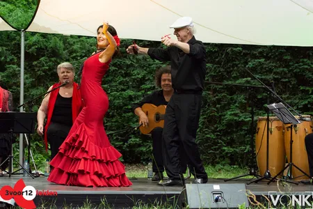 Het bevlogen flamencogezelschap Con Alma bracht afgelopen zaterdag samen met de Leidse Claudio Benito een Andalusische beleving ten tonele in het Openluchttheater Leidse Hout.