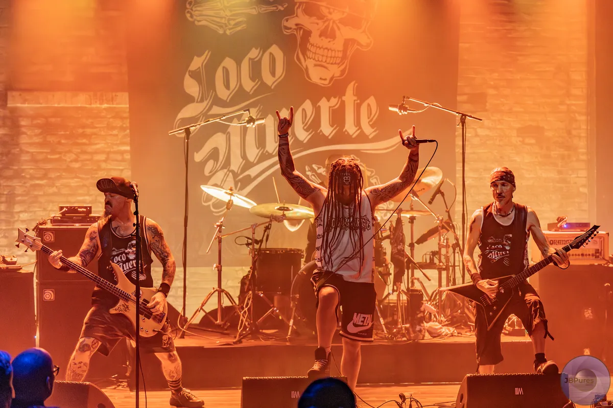 Voordat het zover is, mogen de heren van LocoMuerte aftrappen. Bandana's, petten, tattoos, een megafoon, een opblaaskrokodil, sirenes en zelfs een machete: echt alles komt langs. LocoMuerte geeft meteen gas en is bloedfanatiek. Drummer El Floco speelt erg strak en legt een stevig fundament waar de rest van de band op kan bouwen. We horen groovy hardcore, veel skank-beats, een aantal zware breakdowns en puike gitaarsolo's van gitarist El Mitcho.