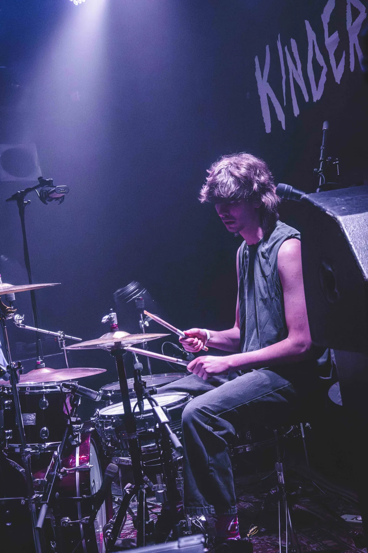 De vierkoppige Nederpunkband Kinderleed uit Harderwijk is ruig, energiek en met een randje gekkigheid, met herkenbare thema’s als herinneringen aan de basisschool of actuele onderwerpen zoals overmoedige mannen.