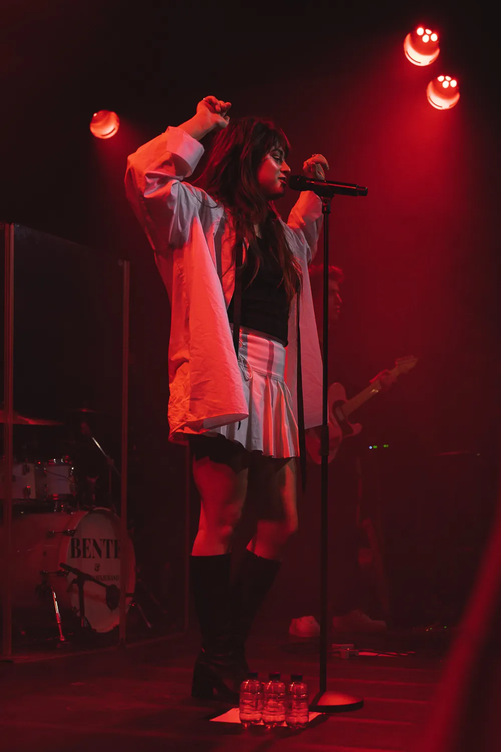 Wie ook erg goed tranentrekkers kan maken is Bente. Tijdens nummers als ‘Ik Schreeuw’ en ‘Toen Je Viel Uit De Lucht’ zijn er genoeg vochtige oogjes in de zaal te bekennen. En ook bij Bente zelf kun je ontroering aflezen bij bepaalde nummers. Bij bijna ieder moment van stilte zien we een ontzettend brede lach op haar gezicht. Ze staat als stralend middelpunt in haar witte outfit tussen de mannen van de band in het zwart. Ze vertelt: ‘Ik heb veel nummers geschreven over vorige kandidaten in de liefde, zo ook ‘Ga Maar’. Maar nu kan ik jullie vertellen dat het eigenlijk best goed gaat in mijn lovelife.’