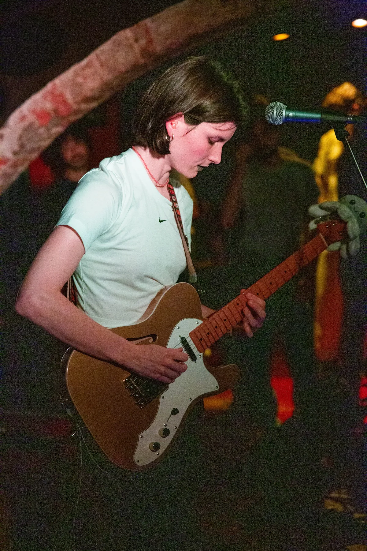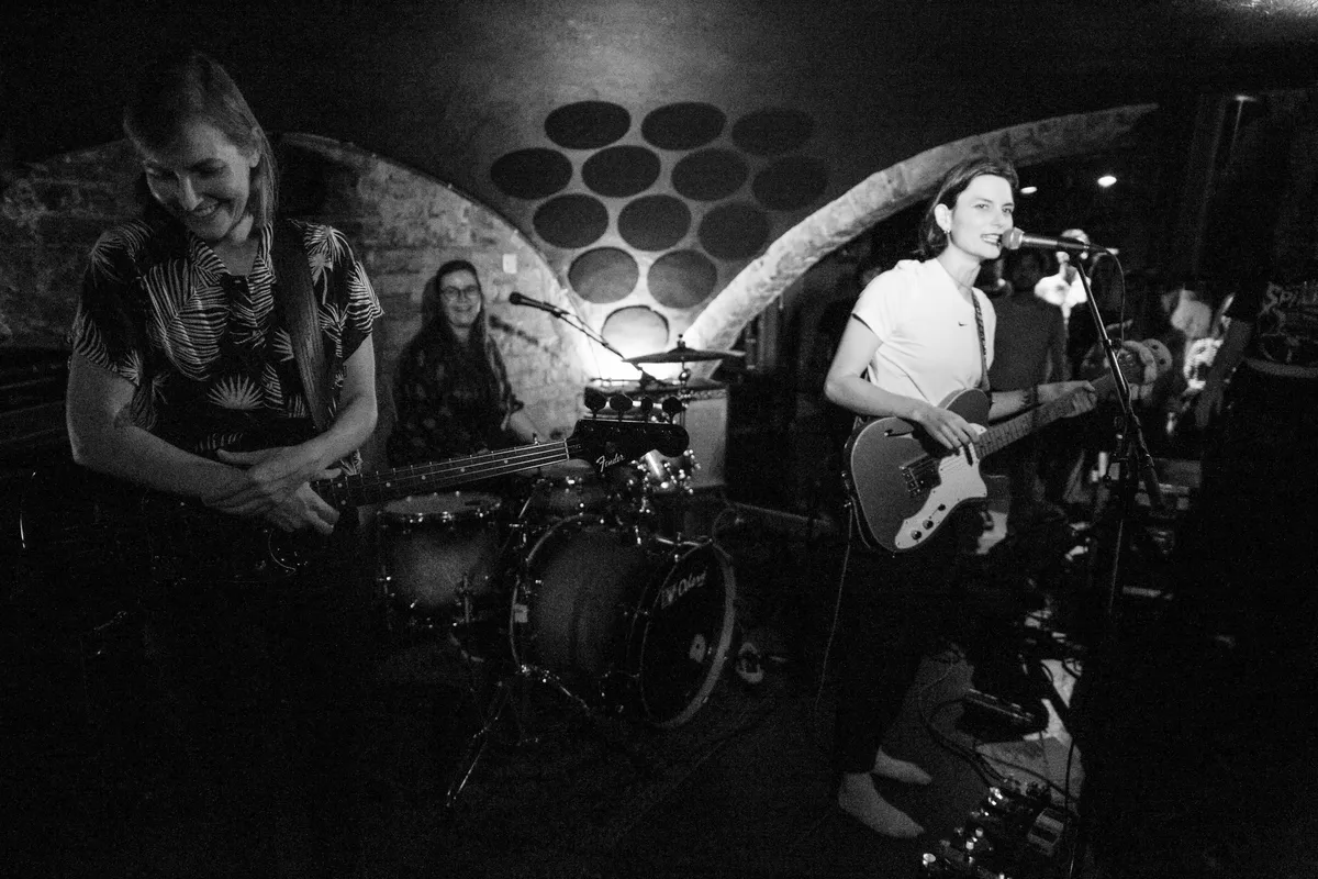 Om meteen met een dik compliment te beginnen: Miezer is natuurlijk een leuk gevonden naam voor een band. En ook de twee nummers die we kennen van Soundcloud, Gevoel voorbij en Ik ben (de jouwe), zingen al lekker rond in ons hoofd. In de Kelderbar is het redelijk druk aan het worden. Genoeg mensen hebben van Miezer gehoord en zijn benieuwd. De groep bestaat uit drie personen. We zien Martsen Hut die gitaar speelt en zingt. Candy Reebroek drumt. En Jennifer de Lange speelt de bas. Hut heeft haar schoenen uitgedaan en heeft een knuffel-octopus op het uiteinde van haar gitaar zitten. Wat tegelijk lief is, maar ook wat verontrustend. Zit dat wel lekker voor zo’n beestje?