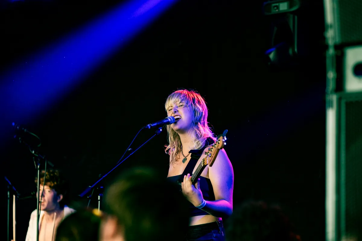 De band van de Zweedse singer-songwriter Sarah Klang komt het podium op met de uitstraling van een stel vrienden dat zojuist een frontale botsing heeft overleefd. De energie? Laten we zeggen dat die nog wat op gang moet komen. Maar dan verschijnt Sarah zelf: flamboyant, met een grote sigaret nonchalant in de hand. Rokend begint ze aan het eerste nummer, en hoewel je je afvraagt of ze haar ademhaling nog wel onder controle heeft, blijkt het tegenovergestelde waar. Ze haalt uit alsof het niets is, en blaast rook uit tijdens de hoge noten, dat hebben we nog niet eerder gezien. Terwijl de rook langzaam wegtrekt, grijpt ze in haar decolleté en tovert er een blikje uit, waaruit ze iets tevoorschijn haalt en tussen haar tanden stopt. Een nicotinezakje misschien? We gokken maar wat. Hoe dan ook, Sarah Klang doet het op haar eigen manier: rokerig en met een flinke dosis attitude. Ohja, je zou de muziek haast vergeten. Haar rustige, melancholische nummers brengen niet de vonk die je zou hopen, en het concert komt dan ook nooit écht van de grond. Het publiek is drukker met elkaar dan met de muziek; het geroezemoes overstemt de nummers, en het applaus blijft schaars. Jammer, maar de nummers hebben ook simpelweg niet genoeg impact om de aandacht van het publiek te kunnen winnen.