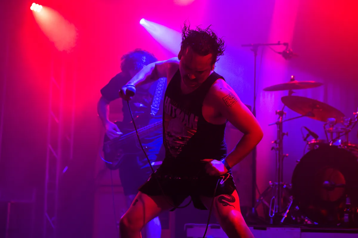 RVG, vandaag in een iets andere samenstelling dan gewoonlijk, verliest geen tijd en knalt de set in met 'Midnight Sun'. Een sterke opener. Zangeres Romy Vager, gehuld in een zebraprintjurk, is vanaf het begin vol overgave, al is haar stem niet altijd even stabiel. Ze kraakt, vliegt af en toe uit de bocht en kijkt dan verontschuldigend naar de rest van de band, maar ze gaat er ten volste voor. Het zweet druipt al na enkele nummers van haar gezicht en uit haar haar. Naarmate de set vordert lijkt ze haar draai te vinden, of wennen we er gewoon aan? Bassiste Isabele Wallace valt op door haar jeugdige uitstraling en sluik blond haar dat haar gezicht verbergt. Ze staat gedurende het grootste deel van de set doodstil, op één voet na, die voorzichtig op en neer wipt. 'A Quality of Evil' en 'That's All' springen eruit. Romy schreeuwt de laatste noten van 'That's All' vanuit haar tenen. Het klinkt erg ruw, maar het werkt en het levert haar een welverdiend applaus op. Het mooie 'Nothing Really Changes' wordt met groot enthousiasme ontvangen, alvorens de band afsluit met 'Vincent van Gogh'. RVG is misschien niet perfect, maar hun passie en rauwe energie zijn onmiskenbaar. (NG)