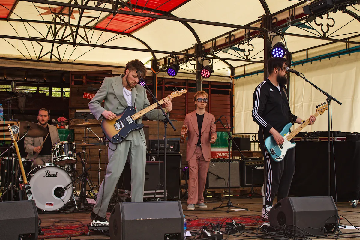 Eva Waterbolk, Harmen Ridderbos, Anne Caesar van Wieren en Bas Sligter (die er jammer genoeg niet bij kon zijn) hadden, na drie jaar van lockdown tot lockdown geleefd te hebben, het gevoel dat ze misschien wel vergeten waren hoe muziek werkte en plein public. Ze nodigden ons uit in de studio/repetitieruimte van Anne Caesar en terwijl we blikjes Hertog Jan drinken en in een cirkel om de telefoon zitten, vertellen de drie muzikanten hoe ze het hoofd weer boven water kregen.