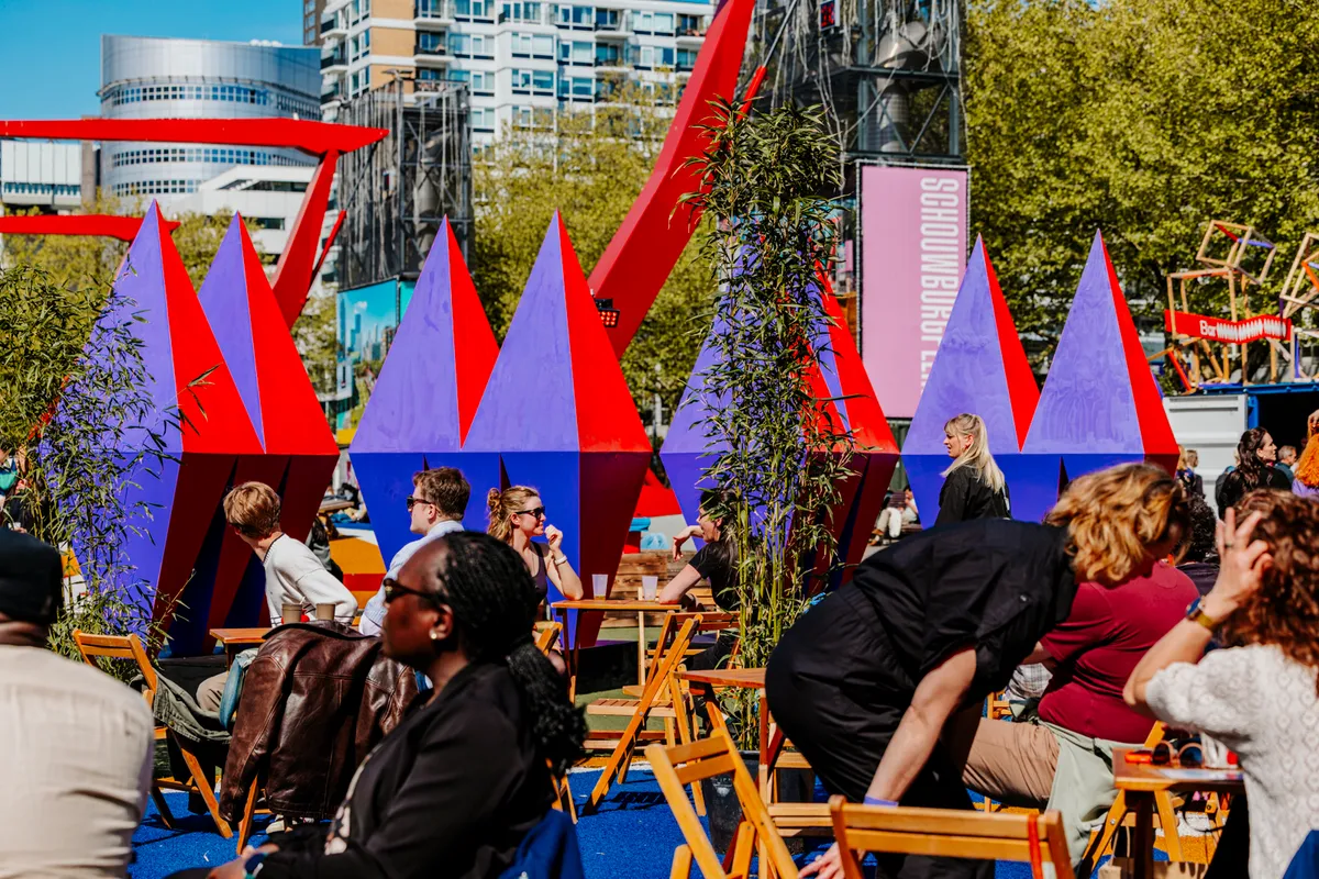 Rotterdam is tijdens het festival geen decor, maar een gids. Overdag begint dat bij Playground, het gratis toegankelijke programma van MOMO, dat vanuit de stad zelf wordt opgebouwd. Op en rond het Schouwburgplein, en verspreid door het centrum, nemen lokale artiesten en collectieven het voortouw met muziek, talks en workshops die de stad van binnenuit laten zien. Vanaf het plein vertrekken ook de tours: gecureerde wandelroutes die je langs plekken en verhalen voeren die je normaal misschien ontgaan, maar die zichtbaar maken wat er in de stad leeft.