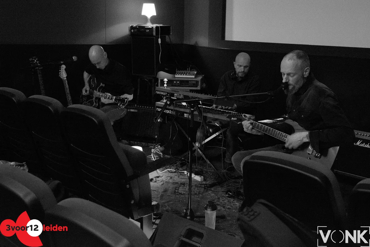 Cinematic rockband Downriver Dead Men Go bracht eind 2022 het uitstekende album ‘Ruins’ uit. Nu, in maart 2023, is het moment gekomen om het officieel aan de Leidse liefhebbers te presenteren. Dat gebeurt op twee momenten: op de vrijdag wordt het hele album in volle glorie getoond in Gebr. de Nobel, maar wij kozen voor een intiemer, meer akoestisch optreden voor de grootste fans de dag ervoor. De locatie is een bijzondere: filmhuisbioscoop het Kijkhuis. Het draaide deze donderdag speciaal om sfeer.