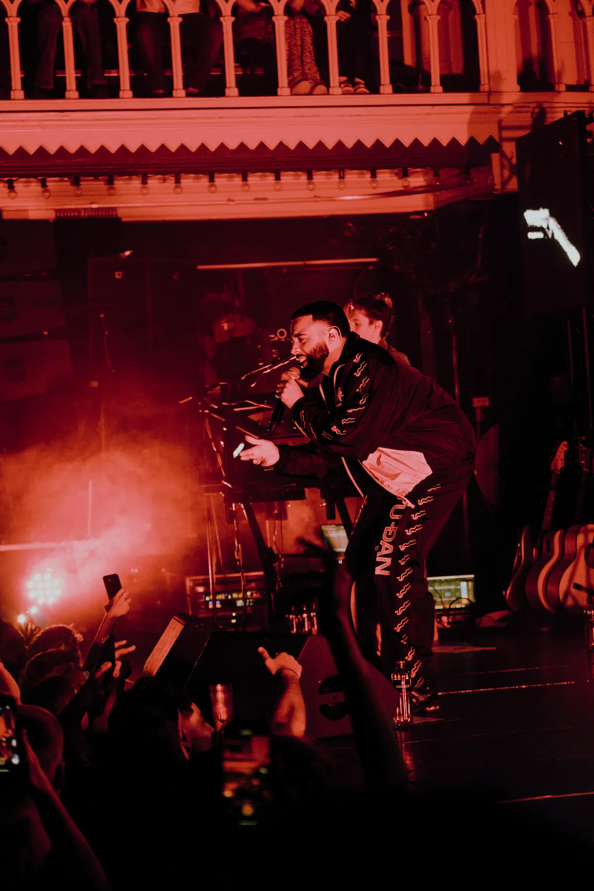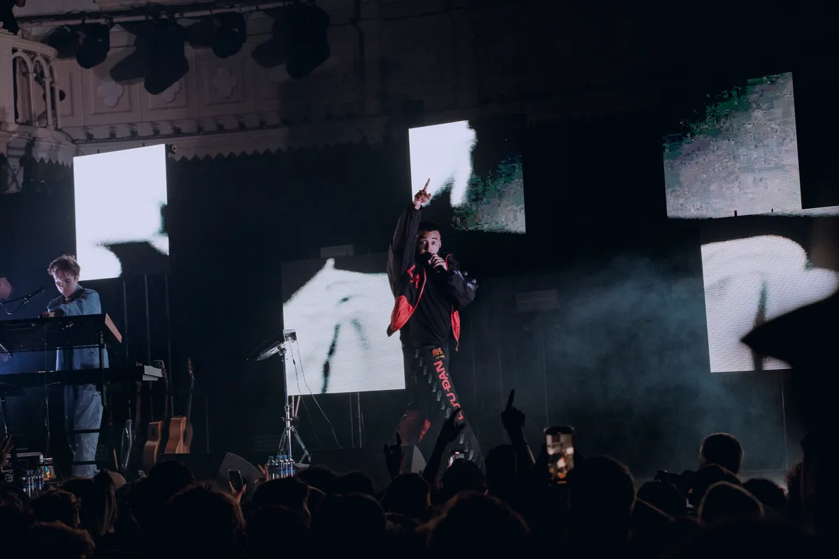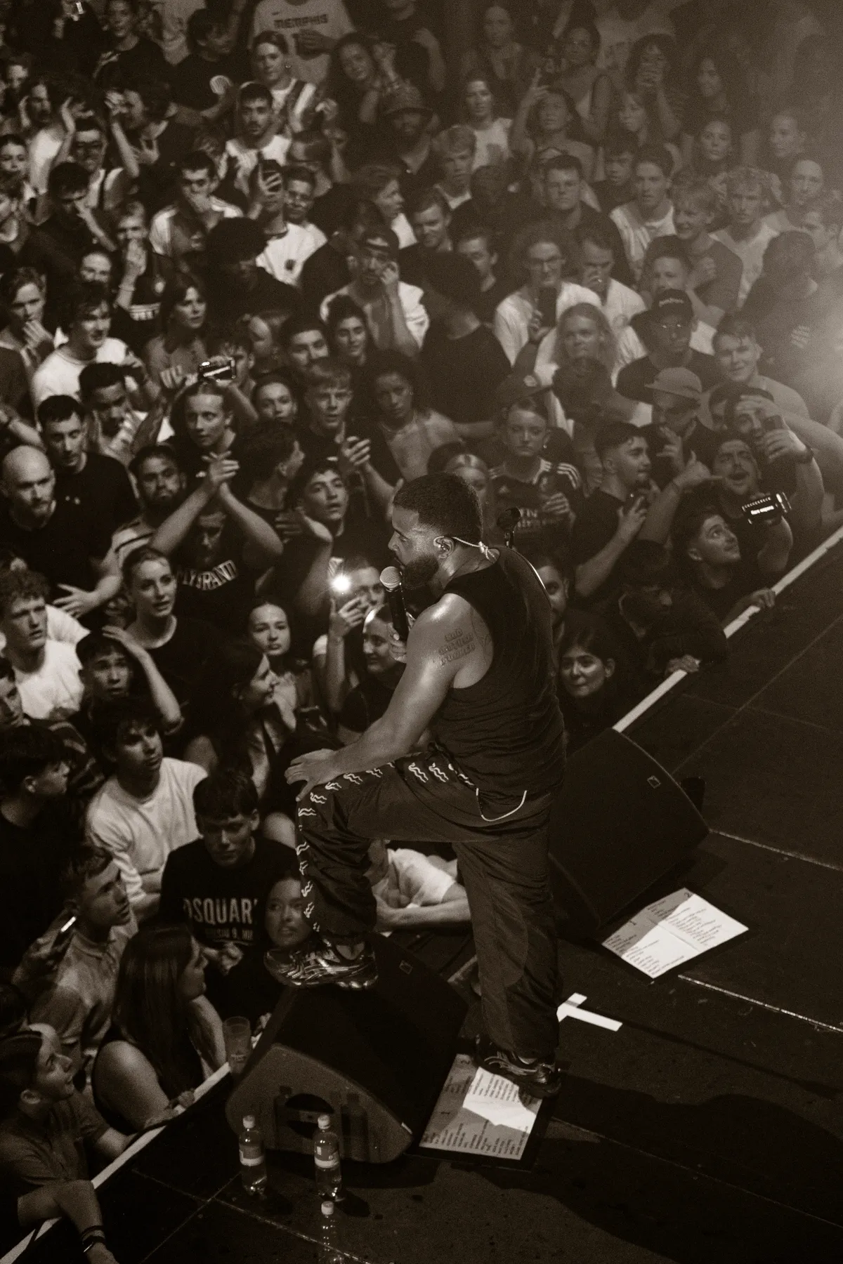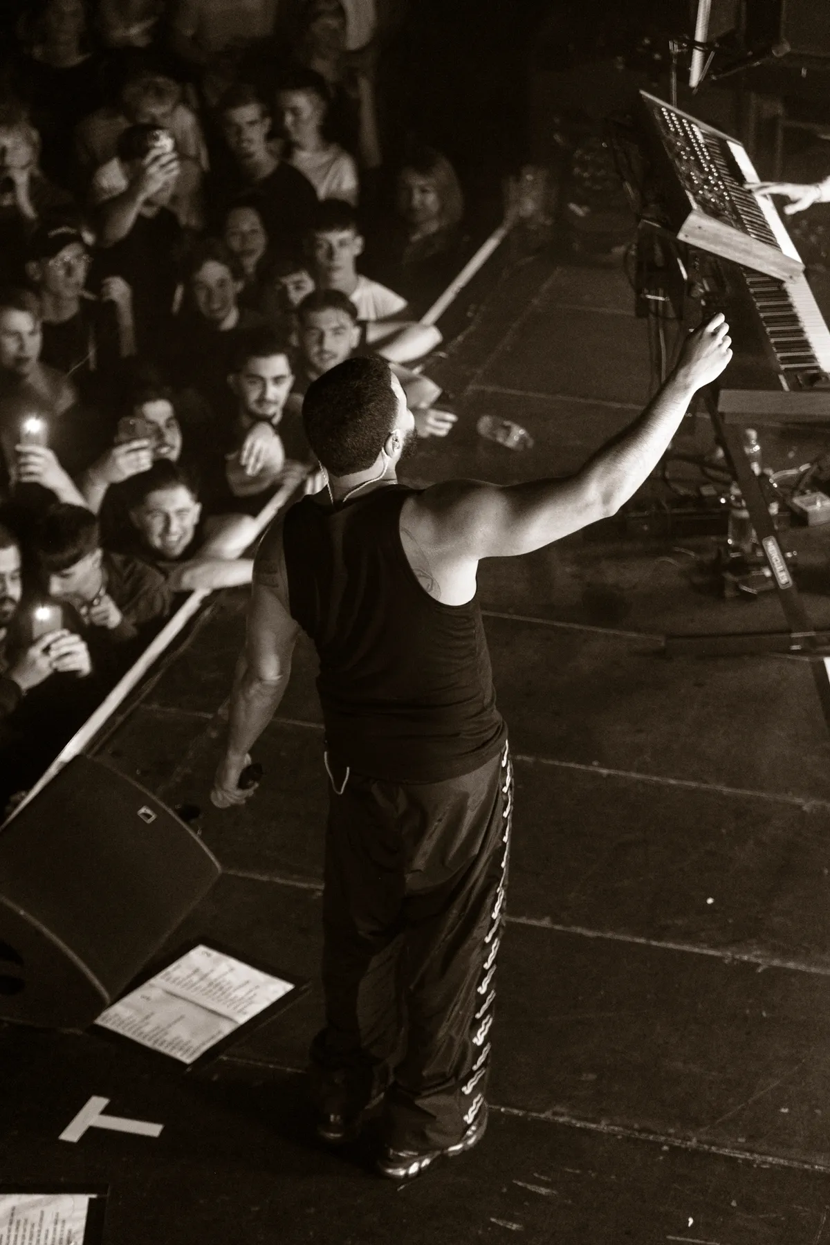Het publiek bestaat grotendeels uit jonge mannen. Voordat de show begint, halen vriendengroepen nog snel biertjes aan de bar. Een jongen met een ananas loopt de zaal door. Op de albumcover van Narcopop, zit Mula B in een stoel, geposeerd met een ananas. De ananas volgt hem zijn hele carrière al. Het verwijst naar zijn bekende selfie, waar hij een ananas vast heeft. Sindsdien nemen fans het op zich om een ananas mee te nemen naar zijn concerten. Om 20.30, stipt op tijd, gaan de lichten uit. Het gejuich is oorverdovend en het wordt alleen maar harder wanneer Mula B het podium opkomt. Hij begint met nummer Sanitair van zijn nieuwe album. Hij volgt met Pijp Uit en het gespring is zo heftig, dat de grond meebeweegt met de menigte. In het publiek wordt een FC Den Haag vlag omhoog gehesen, de stad waar Mula B vandaan komt.