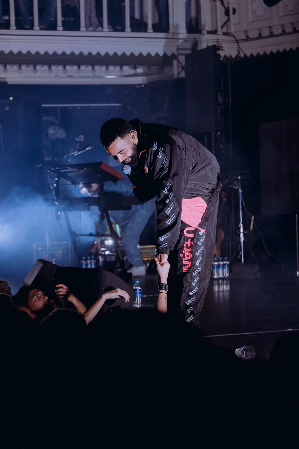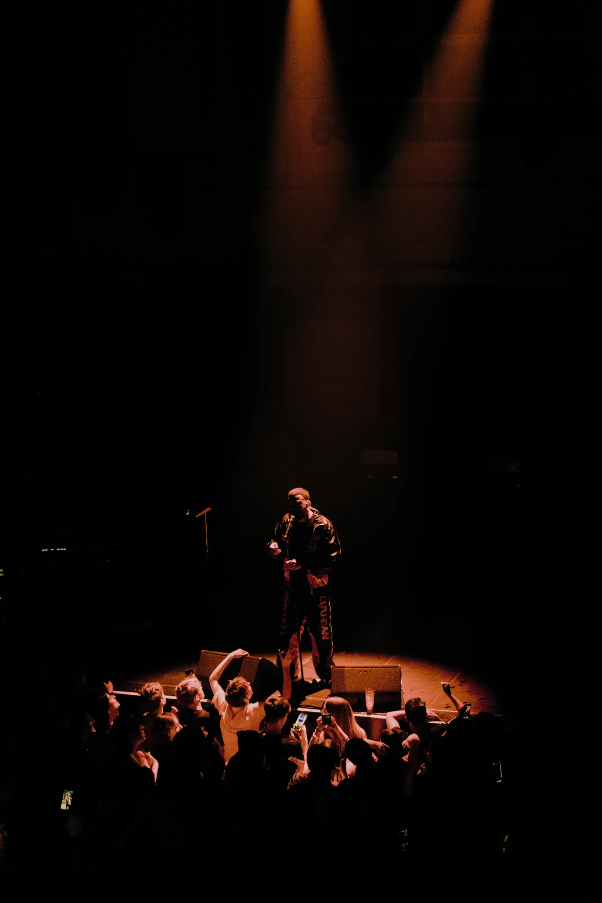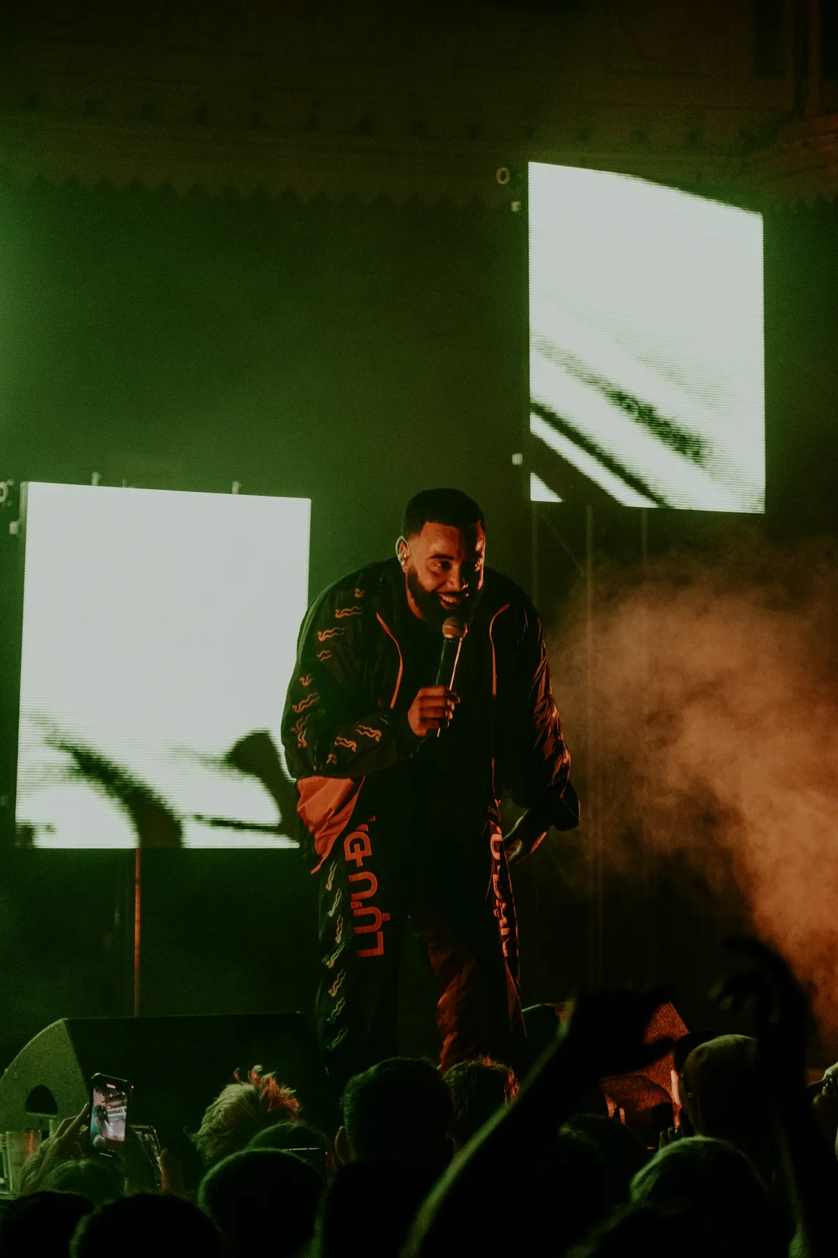 Het publiek bestaat grotendeels uit jonge mannen. Voordat de show begint, halen vriendengroepen nog snel biertjes aan de bar. Een jongen met een ananas loopt de zaal door. Op de albumcover van Narcopop, zit Mula B in een stoel, geposeerd met een ananas. De ananas volgt hem zijn hele carrière al. Het verwijst naar zijn bekende selfie, waar hij een ananas vast heeft. Sindsdien nemen fans het op zich om een ananas mee te nemen naar zijn concerten. Om 20.30, stipt op tijd, gaan de lichten uit. Het gejuich is oorverdovend en het wordt alleen maar harder wanneer Mula B het podium opkomt. Hij begint met nummer Sanitair van zijn nieuwe album. Hij volgt met Pijp Uit en het gespring is zo heftig, dat de grond meebeweegt met de menigte. In het publiek wordt een FC Den Haag vlag omhoog gehesen, de stad waar Mula B vandaan komt.