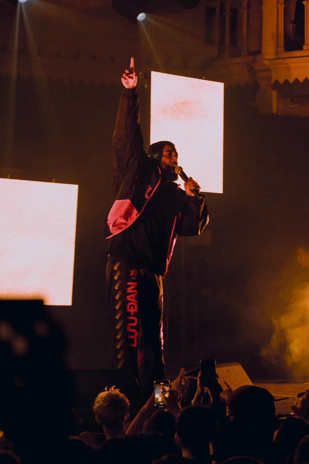Na zijn flinke entree kondigt hij een paar nummers aan voor de ‘echte beseffers’. Dat betekent niets minder dan zijn eerste album Drugs & Geld, waar zijn carrière begon op te pakken. De unieke beat van Lange Loop klinkt en het gaat helemaal los. Het houdt daar niet op, voor zijn grootste fans volgen nog meer iconische nummers zoals Echekems en Nieuwe Sim. Trouw dreunt het publiek de tekst op, met de handen bewegend op de muziek.