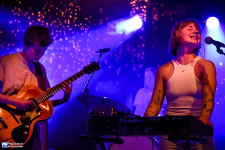 De ideale manier om bij te komen van Koningsdag; live muziek in Mezz . Na een indrukwekkende set bij de Popronde begin april moesten wij Loupe nog een keer live zien. De veelbelovende Amsterdamse band valt gelijk direct met de deur in huis met het meest recente werk ‘21’ en ‘Too Soon’, om vervolgens aan te kondigen dat ze werkt aan een plaat. Goed nieuws. Het is net als bij de Popronde een heerlijke combinatie van de vier elementen van de band: speelse baslijnen, retestrakke drums, gitaarmelodieën om bij weg te zwijmelen en de stem van zangeres Julia Korthouwer die je continu triggert om te blijven luisteren.