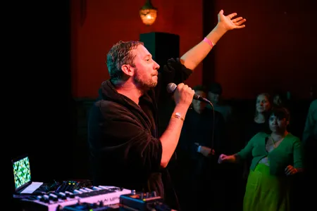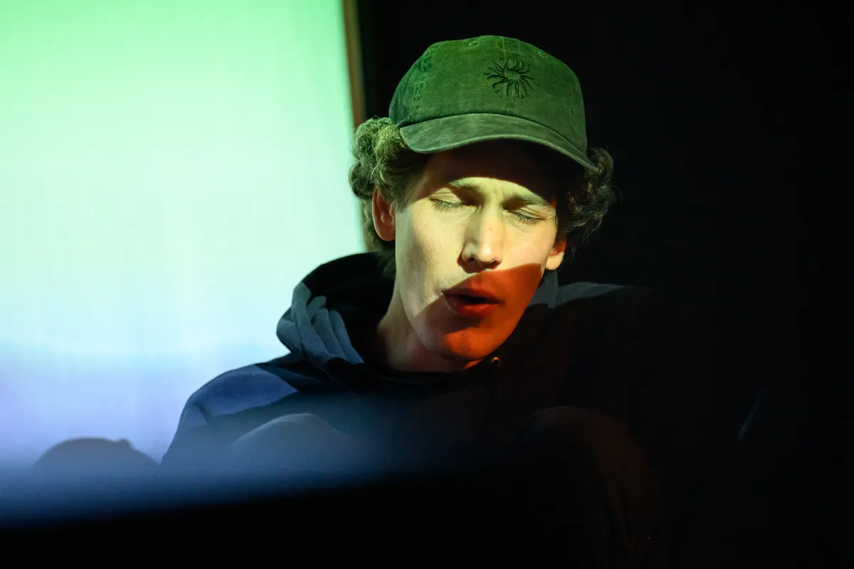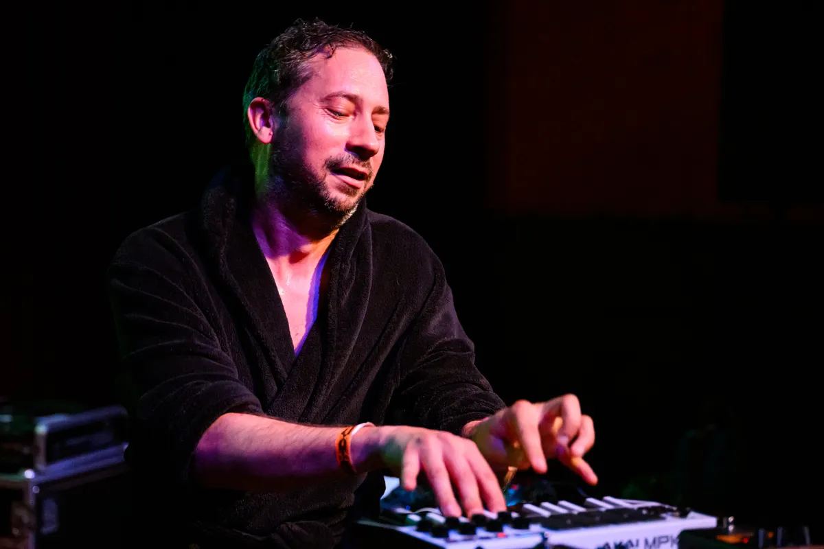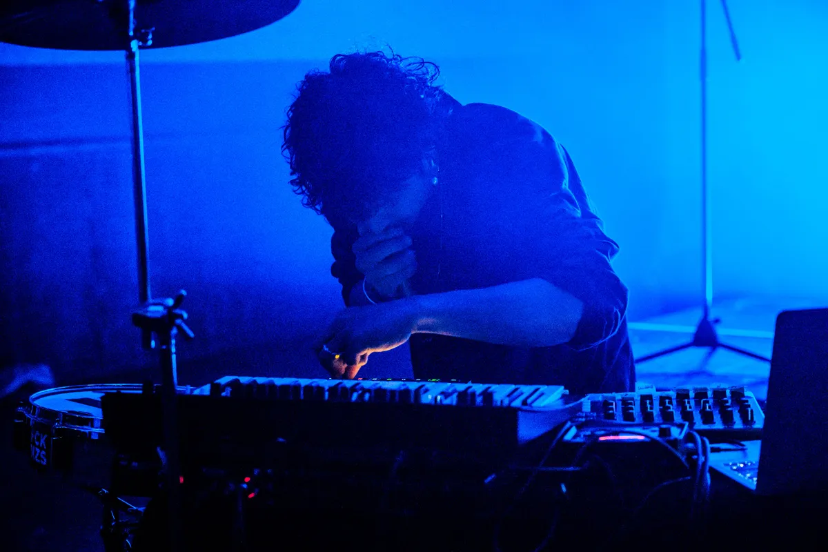 Zijn muziek? Een mix van elektronische avantpop, circus tekno, een vleugje kleinkunstige dancepunk en een flinke scheut ironie. De geprojecteerde beelden zijn al even absurd: hydraulische persen, scheikundige proefjes, kippen – er komt van alles voorbij. Dit versterkt het gevoel dat je naar een droom aan het kijken bent waarin niets klopt, maar alles mag. Wanneer hij vraagt om een ‘romantic song’, klinkt dat meer als een grap dan een oprechte suggestie. Zijn vermogen om zo snel tussen instrumenten en stijlen te wisselen, laat zien dat er achter die ogenschijnlijke verstrooidheid een ware showman schuilt, een indrukwekkend spel van controle en chaos. Manu Louis bewijst dat hij perfect past in het absurde universum van dit festival. Verwarrend? Zeker. Vermakelijk? Absoluut. (RZ)