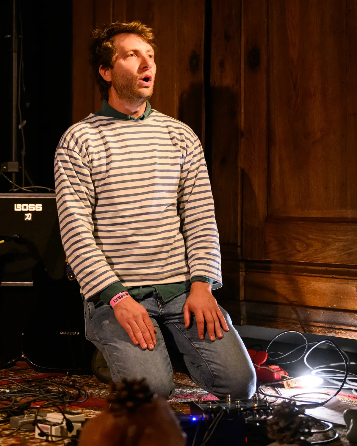 Dat brengt hem naar Murf/Murw waar hij op zaterdag de spits mag afbijten van het muziekprogramma. De Roover opent in BSO, mooi geplaatst tussen kleedjes en voor de aanwezigen is het duidelijk dat hij gaat beginnen als het zaallicht uitgaat en die voor het podium aangaat.