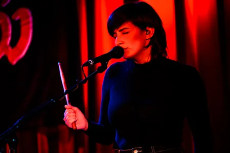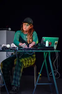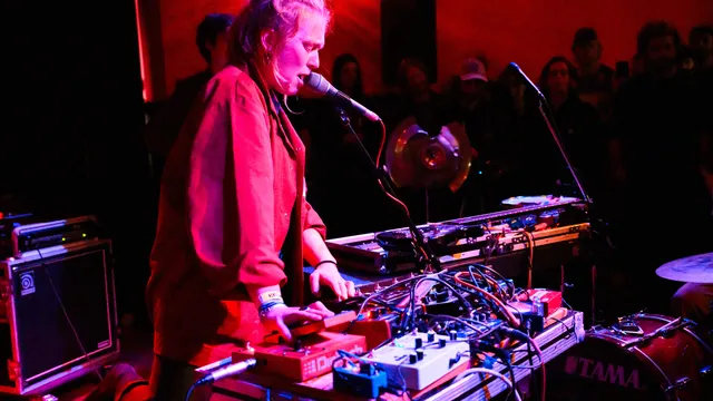Wat vrijwel alle acts dit weekend met elkaar gemeen hebben is dat ze de potentie hebben je mee te nemen naar een andere tijd, plaats of werkelijkheid. Bij Meril Wubslin kunnen we ons zomaar te midden van de Franse Revolutie wanen met opzwepende drums, Franstalige vocalen die vanaf het tweede nummer onderdeel van de set worden en blaasinstrumenten, al worden die laatste dan uit een samplepad opgetrommeld.