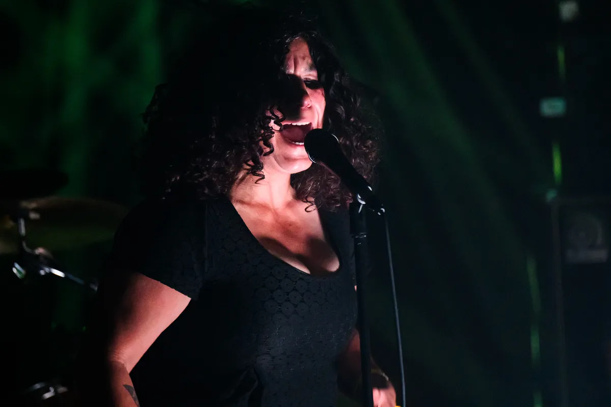De meeslepende stem van zangeres Cheyenne Vivia, verweven met het krakende, ruwe gitaarspel, roept een sfeer van onheil op. De gitaar slaat traag, maar versnelt wel en komt plotseling naar een bijna punkachtig ritme, waardoor de spanning wordt opgebouwd. Meerdere stemmen en geluiden dringen subtiel door op de achtergrond, wat het optreden een hypnotische gelaagdheid geeft en de aandacht van het publiek vasthoudt. Hoewel het optreden door het ontbreken van drums een tragere, zwaardere kadans krijgt, schept het juist een bijna buitenaards gevoel. In deze sfeer van doomy traagheid en sonore klanken, wordt zangeres Cheyenne Vivia haast ceremonieel gekroond tot koningin van deze duistere wereld. (FC)