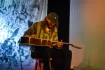 De hele set lang blijft Tempelboom over zijn gitaar gebogen zitten, alsof hij langzaam versmelt met zijn instrument, en alleen tijdens het applaus aan het einde van een nummer kijkt hij even op, om dan met een ietwat verschrikte blik over het publiek te gaan en in te schatten wat voor vlees hij vandaag in de kuip heeft. Dat is een welwillend publiek, dat tot de laatste tonen blijft zitten, ook al gaat hij over de toegekende tijd heen en speelt hij bijna een uur vol. Dan gaat de gitaar terug in de koffer met daar tussen alle andere stickers eentje van zijn landgenoten Amenra. En verrek; Tempelboom had eigenlijk ook niet misstaan op een plek als Roadburn of als voorprogramma van de post-metalband uit Kortrijk. Tot volgend jaar dan? (LJ)