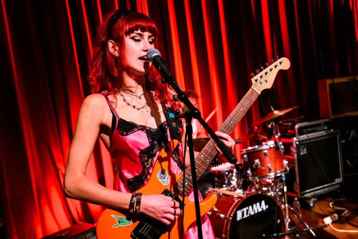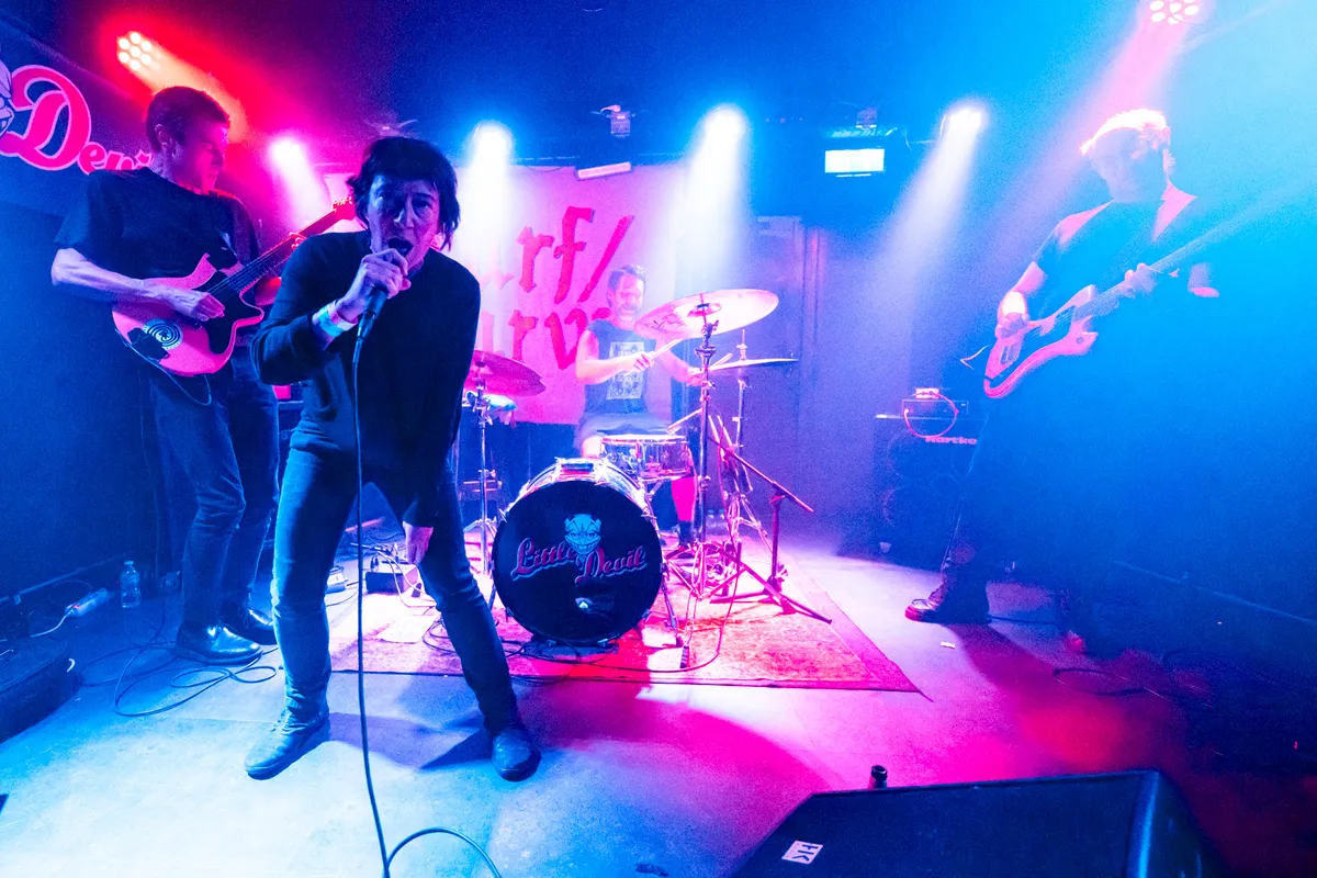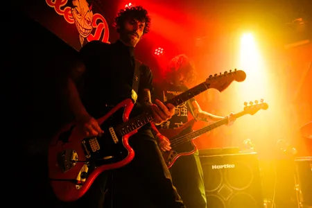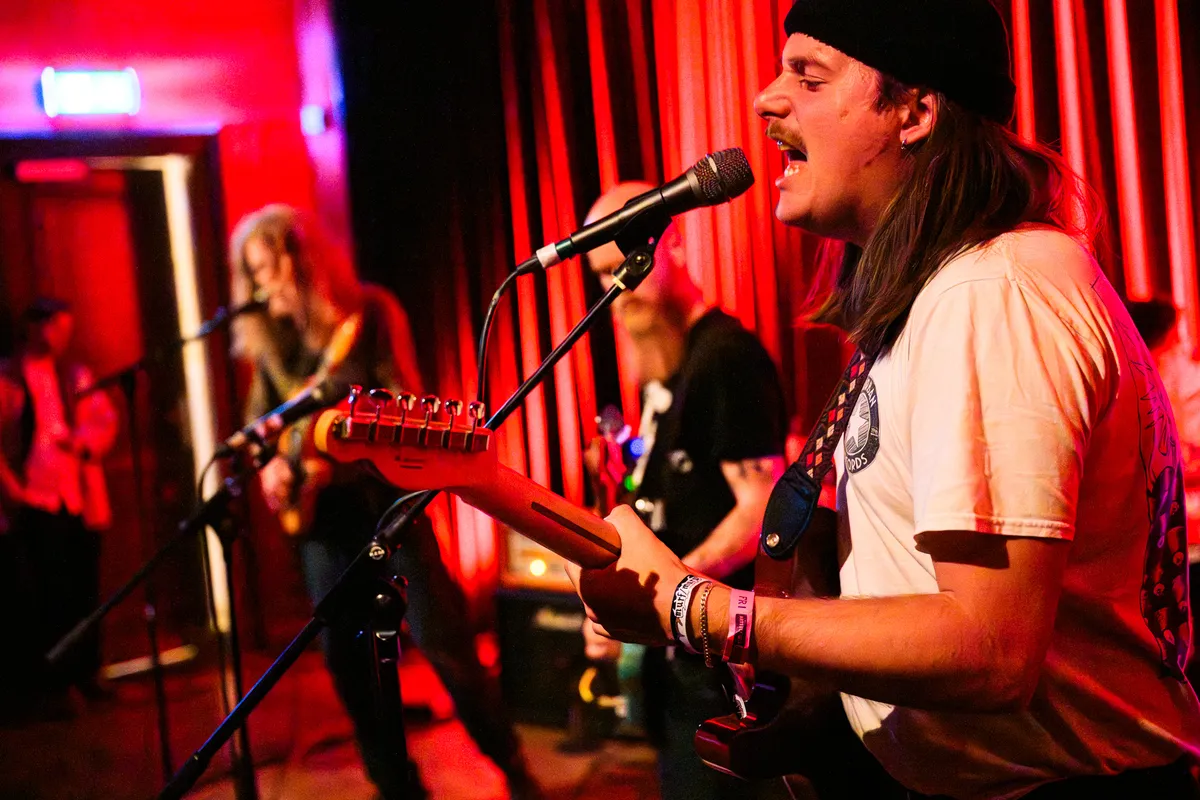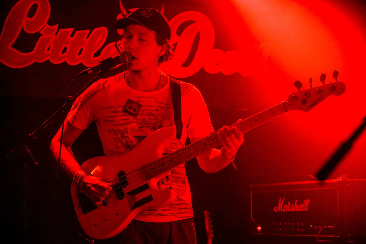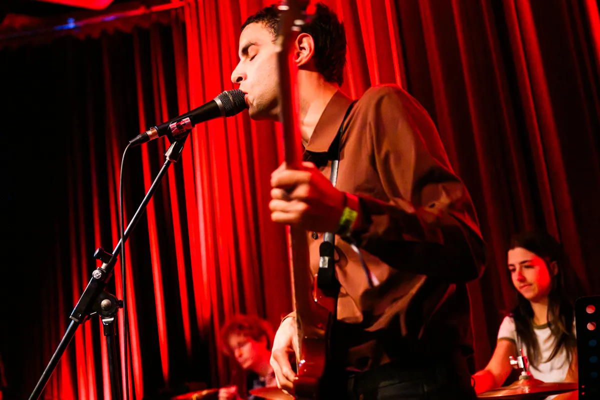 Van dat stille scherptewerk wandelen we naar de Little Devil. Global Charming opent hier het weekend met hoekige postpunk, maar vanavond mist er iets. Letterlijk: gitarist en zangeres Sara Elzinga is er niet bij, waarom weten we niet, maar het gat is voelbaar. Als trio blijft de band hangen in herhaling; de nervositeit en grilligheid die hun nieuwe plaat zo interessant maken, sijpelt maar mondjesmaat door. Frontman Jilles van Kleef zingt wat vlak, waardoor de nummers minder bijten dan je hoopt. Op plaat klinkt die herhaling als opzettelijke beklemming; live voelt het vooral als het gaspedaal dat nét niet ver genoeg wordt ingedrukt. Toch groeit de set langzaam, en als de grooves hun balans vinden, hoor je weer waarom deze band ooit genomineerd werd voor een 3voor12 Award. Het potentieel is er, maar vanavond blijft het echter bij een blauwdruk.