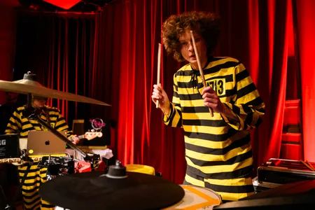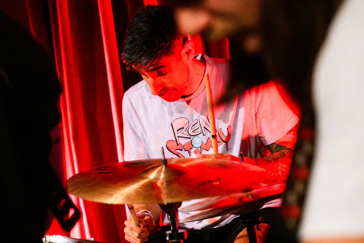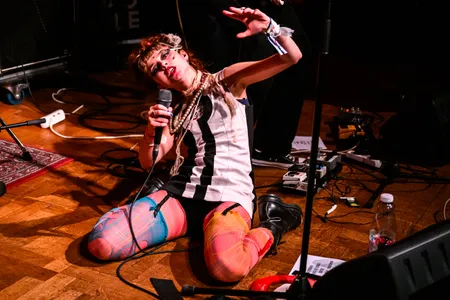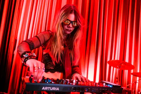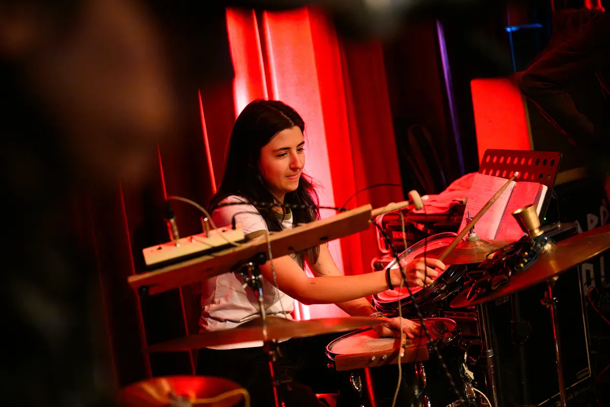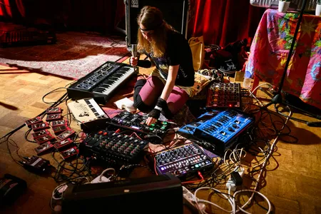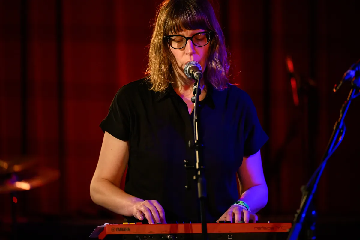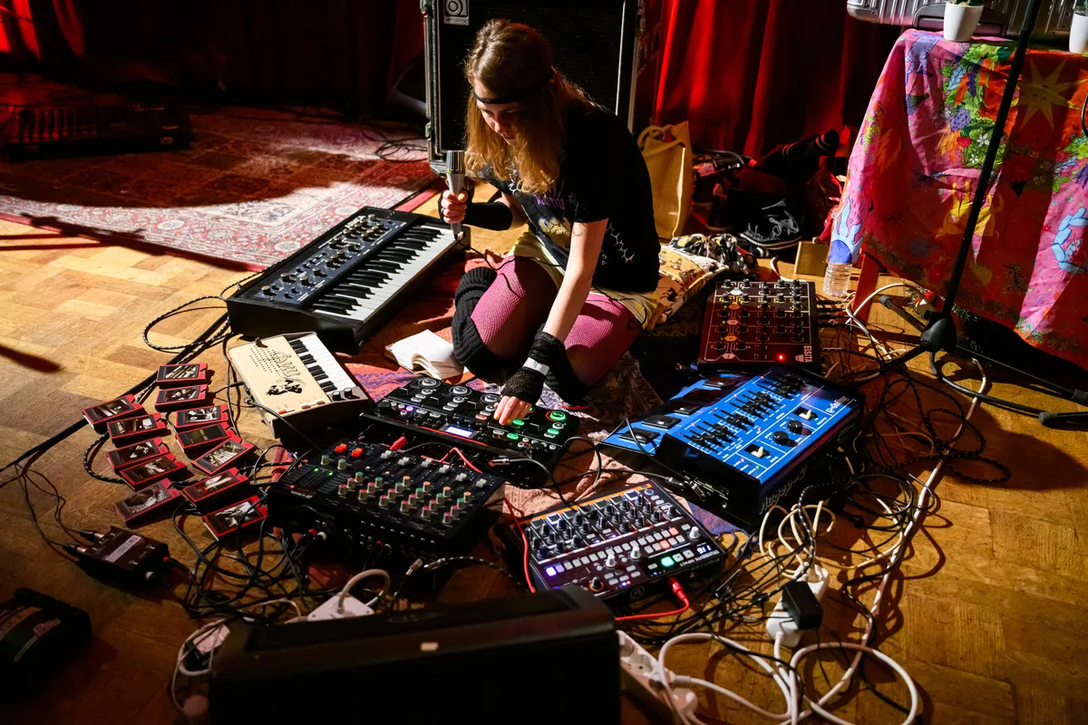 Gehuld in een jurkje en glitterballerina's staat De Groot achter haar uitgestalde elektronica, terwijl Richard van Kruysdijk achter haar zit op drums: strak, maar met de souplesse van een jazzdrummer. Wat volgt is een stuiterende, onvoorspelbare mix van analoge elektronica met een vleugje punkattitude en dansbare chaos. De sound van Plus Instruments is ongrijpbaar en ritmisch, geworteld in de Ultra-beweging (een beweging van Nederlandse bands rond de jaren ‘80 die experimenteerden met postpunk en no wave). Pulserende synths, piepjes en bliepjes, en vocalen die meer deel zijn van de beat dan van een melodie. Het voelt niet als een retro-act: De Groot danst, wijst, lacht en klinkt alsof ze morgen opnieuw een genre kan uitvinden. Een hoogtepunt is ‘People Are Stupid’, een stotterende, kronkelende electrotrack vol ironie. Hier geen nostalgie, maar pure urgentie.