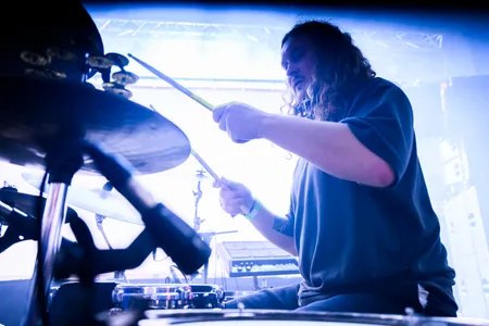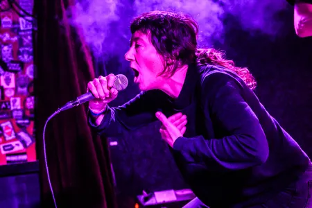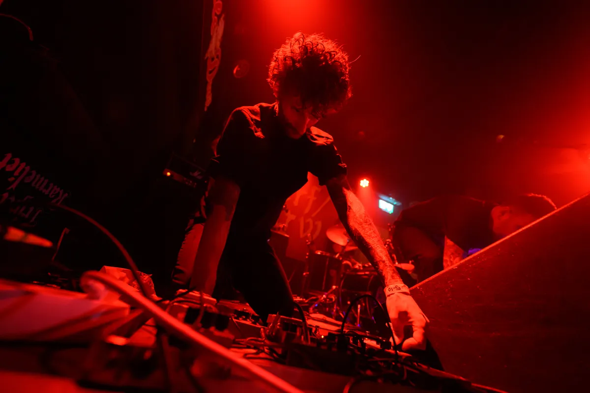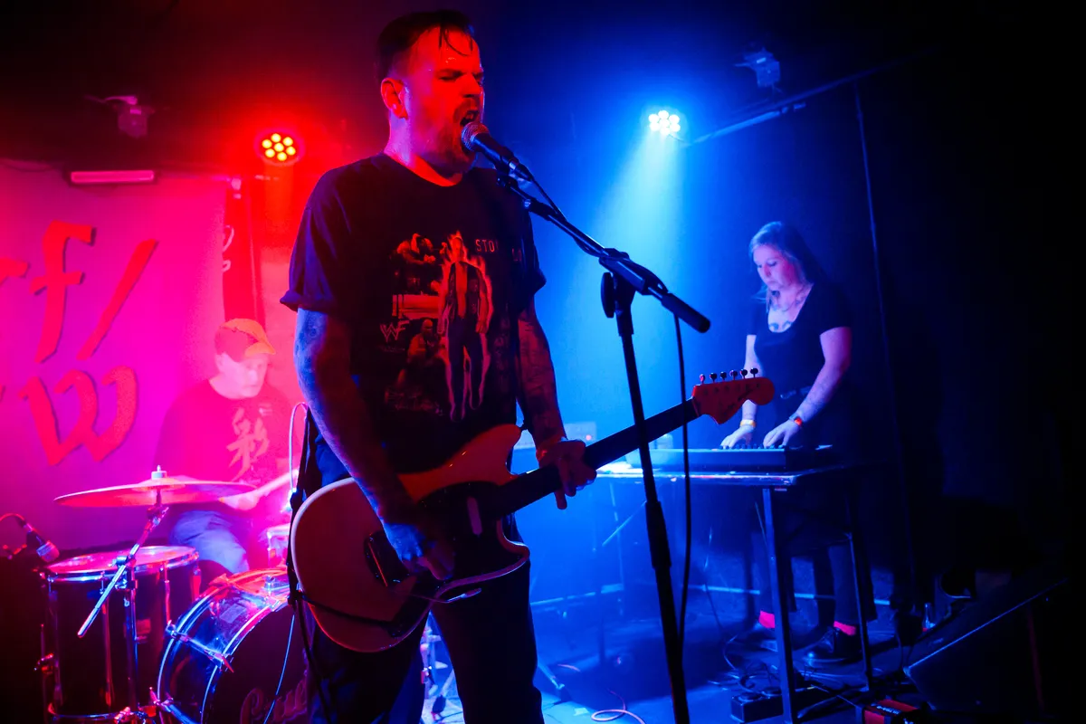 Na een snelle hap bij de snackbar gaan we door naar de Little Devil, naar het hardere werk, bij KLÄMP. Een muur van noise: strak en overweldigend. De gitaren hangen op de knieën, de drummer jaagt de boel op. De band bouwt lagen van industriële postpunk, krautrock en shoegaze op tot een geluid dat je inwendig masseert. Het doet denken aan Swans en Sonic Youth. Zanger Greg Wynne schreeuwt zijn teksten bedolven onder lagen distortion, terwijl de rest van de band een collectieve trance bereikt. Het is fysiek, claustrofobisch, maar de noise heeft iets helends. Wat opvalt is dat de synths van Rachael Morrison amper te horen zijn, maar het écht missen doen we ook niet. “This was the first stage I ever played in Europe twenty years ago (!!). Nothing changed but the stage,” vertelt Wynne. KLÄMP bewijst dat het niet altijd innovatief hoeft te klinken. Soms is evolutie gewoon meer lawaai.