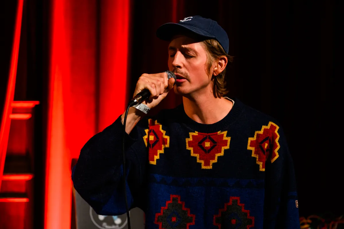 Burger Service, het alter ego van Jan Tromp, houdt het op zijn beurt klein. Alleen op het podium, geen instrument, mengpanelen of bandleden om zich achter te verschuilen. Zijn stem is breekbaar, zijn teksten absurd alledaags. “Mijn broer was een gabber,” zingt hij, en even later schreeuwt hij “Niemand heeft een schuld!” met een overtuiging die bijna pastoraal voelt. De nummers balanceren tussen kleinkunst en synthpunk, tussen banjo’s en beats, tussen lachen en ongemak. Het is vervreemdend en eerlijk, alsof Spinvis een dag te lang in de Albert Heijn is blijven hangen.